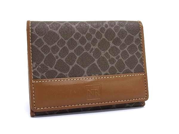 ■極美品■ NINA RICCI ニナリッチ レザー 総柄 名刺入れ カードケース カード入れ レディース メンズ ブラウン系 DH9580