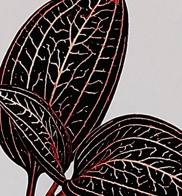 ジュエルオーキッドの魅力: 葉が紫外線に反応してキラキラひかるのは ‘不思議’ そのもの 脈上の層に浮いている様で宇宙空間の3D