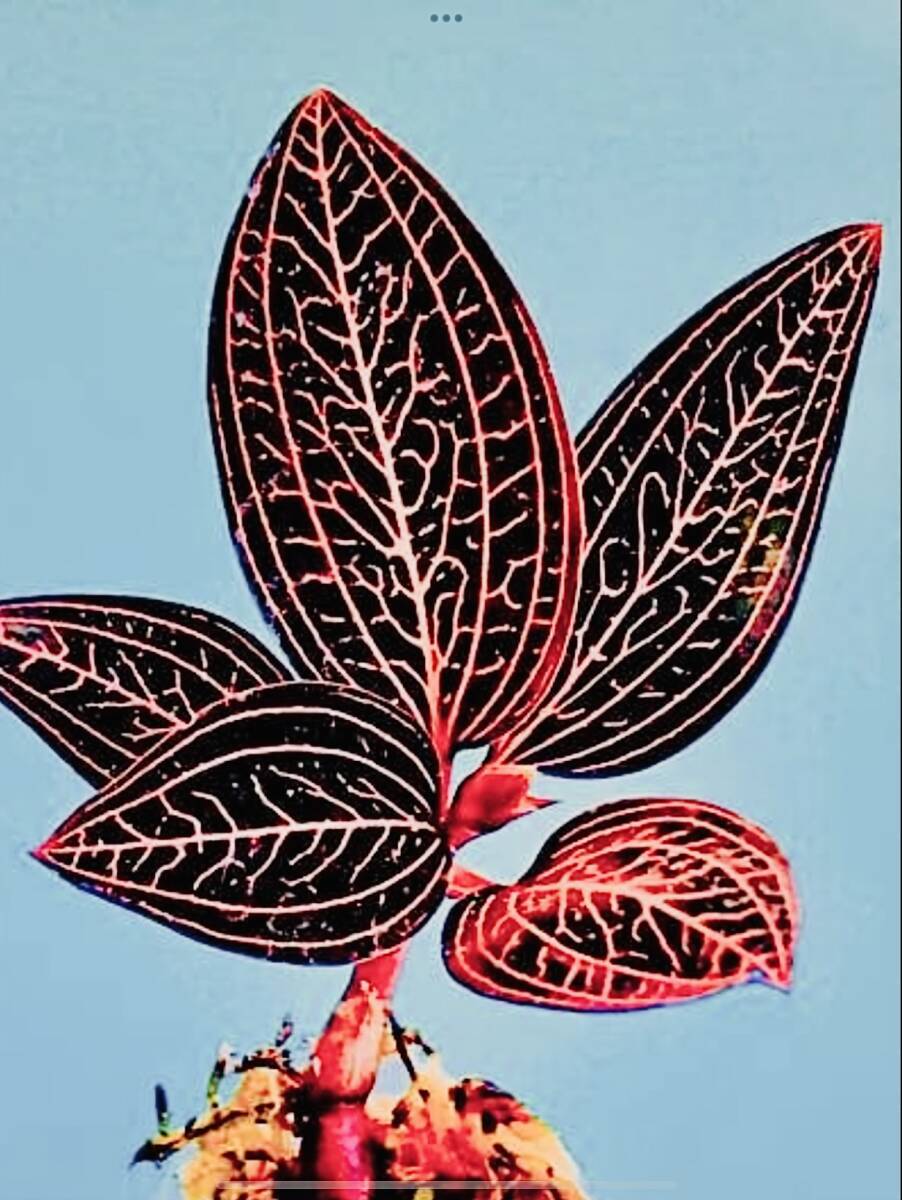 ホンコンシュスランの脈が細かく密に入った物  葉はワインカラーを地に朱金色の脈が光る 丈夫で生育旺盛 人工栽培では培養土により 根を出さない場合もあり太い茎のみで成長を続ける ジュエルオーキッドは体全体で生育する ホンコンジュスランを熟知した方のみとさせていただきます ホンコンジュスランは根はごく少ないか 出ません 茎が根の役目を果たす特殊植物です フラスコ苗では少し出ているものや 無いものがありその点ご了承下さい 花は純白で綺麗です