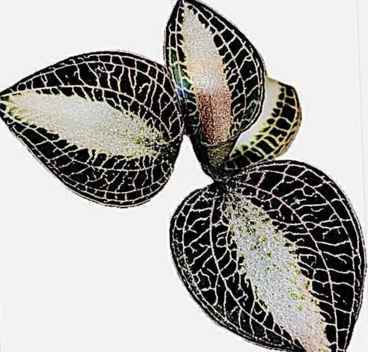 ジュエルオーキッドの魅力: 葉が紫外線に反応してキラキラひかるのは ‘不思議’ そのもの 脈上の層に浮いている様で宇宙空間の3D