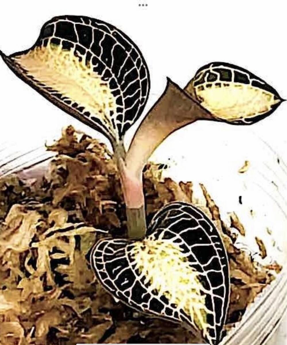 鉢に入っただけの栽培は難しくプラカップ テラリウム等 環境は湿度70-90%と高く 耐寒暑は5-35℃ 理想生育温度は22-28℃ 又 根は体を支える役め 根がない場合でもジュエルオーキッドは体全体で空気中より栄養分をとる仕組みになっている 根基の黄色い粉末は殺菌剤