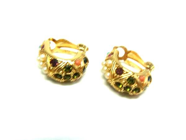 D'ORLAN ドーラン ラインストーン クリップ式 イヤリング アクセサリー レディース ゴールド系×マルチカラー DJ3274
