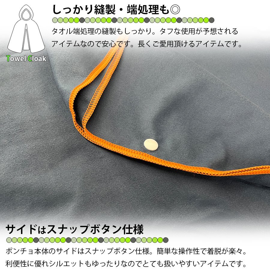 | ・マイクロファイバー・タオルポンチョ 着替え用タオルです。 ・吸収性・速乾性に優れた着替え用タオルになります。 ・マリンスポーツ・アウトドア・スポーツシーンなど幅広いシーンで活躍してくれるアイテムです。 ・サイドはスナップボタン仕様。フリーサイズで男女兼用が可能です。 ・水遊び後の防寒アイテムとしても活躍してくれます。 ・バレルサウナなどの共用スペースでの使用にもオススメです。 ・1枚あれば着替え用タオルとしては使いまわしが可能。 ・4色展開でお好みに合わせてチョイスすることが出来ます。 |