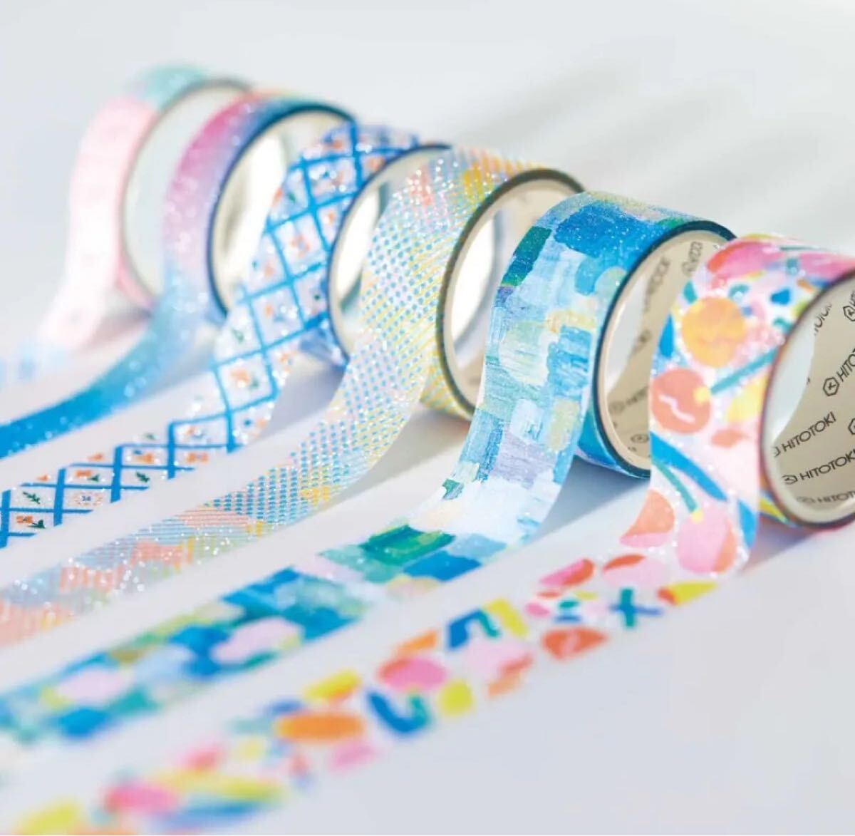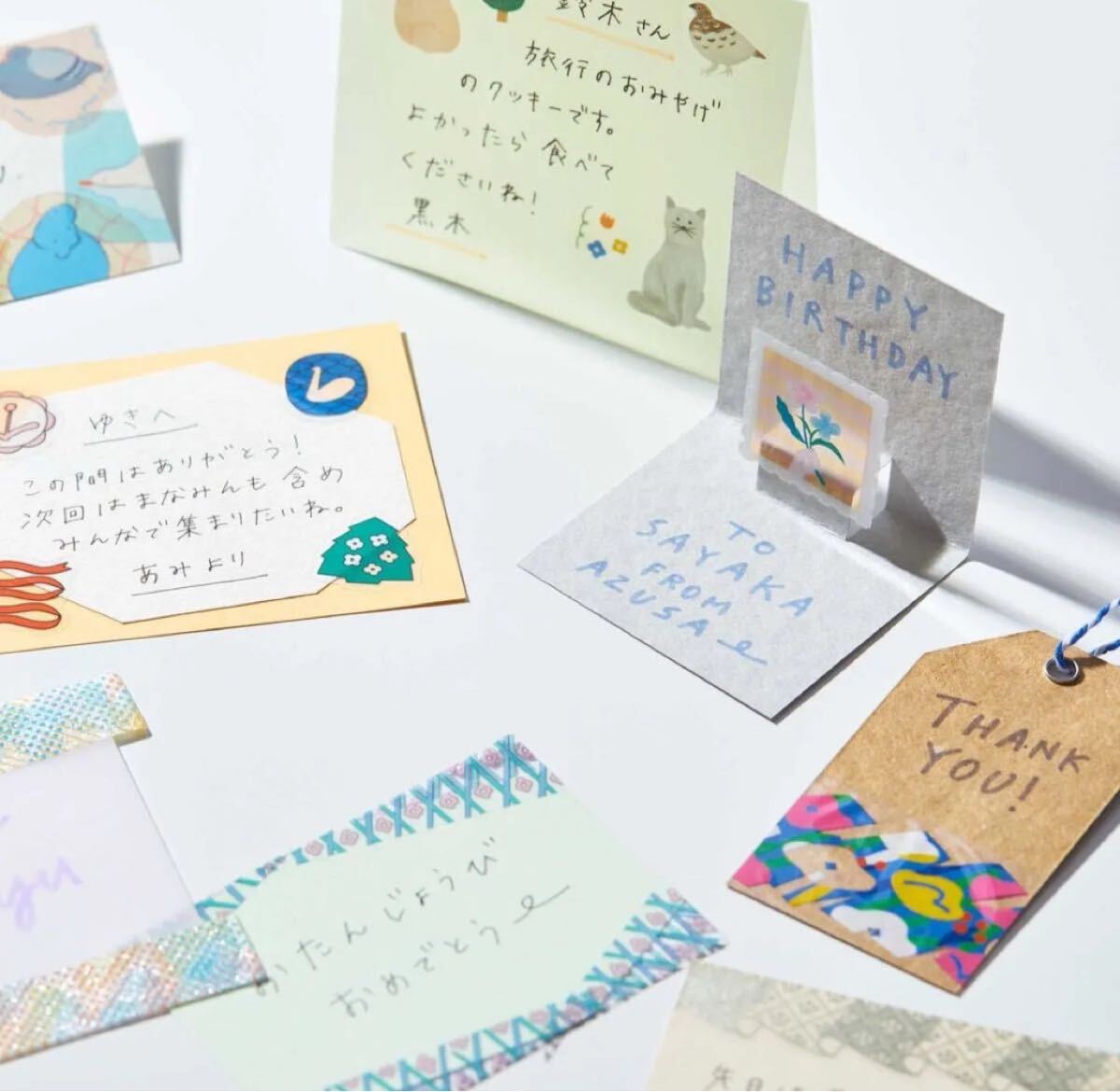 フィルム素材でやわらかい貼りごこちの透明マスキングテープです。手帳やラッピングはもちろんガラスやアクリルに貼っても透明感を楽しめます。