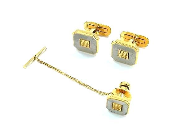 ■美品■ GIVENCHY ジバンシィ カフスボタン カフリンクス タイタック ネクタイピン アクセサリー 2点セット ゴールド系 DK7916