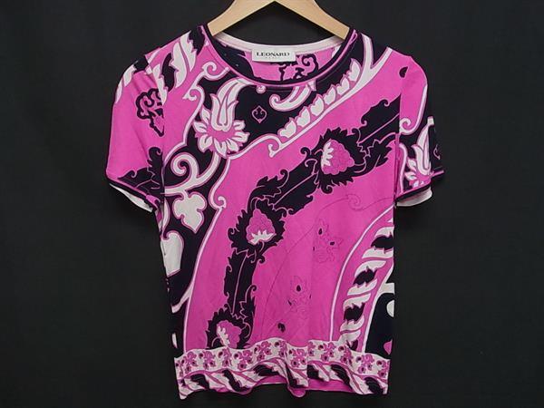 LEONARD レオナール シルク100% 総柄 半袖 Tシャツ 表記サイズ 36 洋服 レディース ピンク系×マルチカラー DI8759