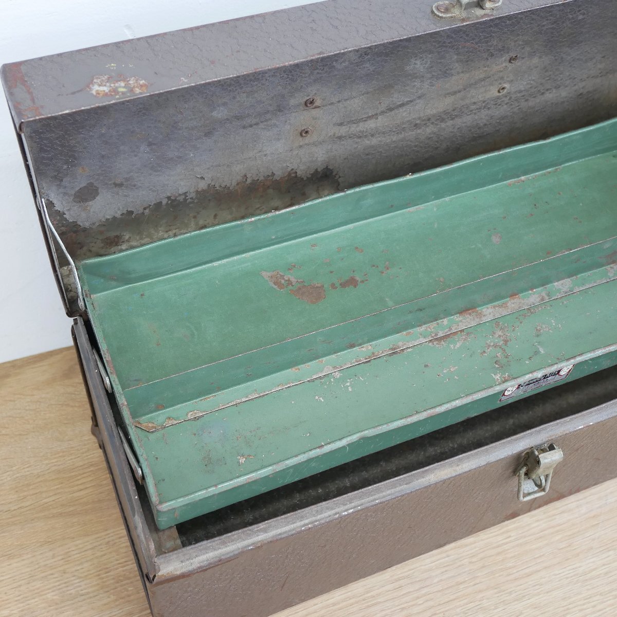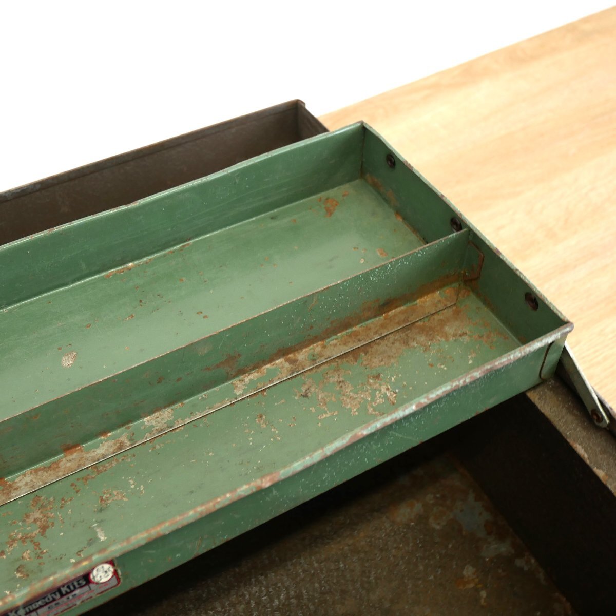 | 商品説明 explanation | 1950年代の「Kennedy Kits CS-19」ツールボックスです。 グリーンの折りたたみトレイが付いています。 ジャンクなアイテムをガーデニングや小物入れなどにいかがでしょうか。 |