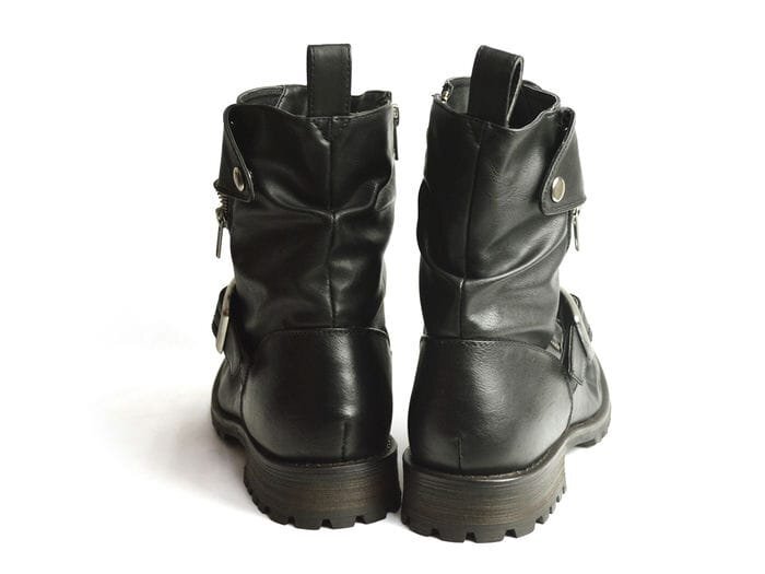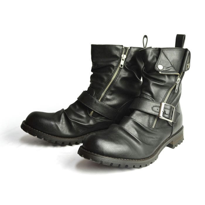 エンジニアブーツ ドレープ ビンテージ サイドジッパー バイク バイカー ライダース ベルト 黒 赤 ショート ミドル 着脱簡単 ze319