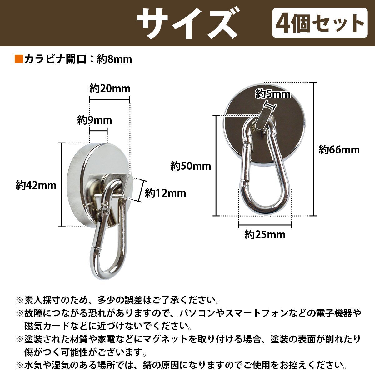 ■仕様:ステンレス製、ネオジム磁石、カラビナ付き
