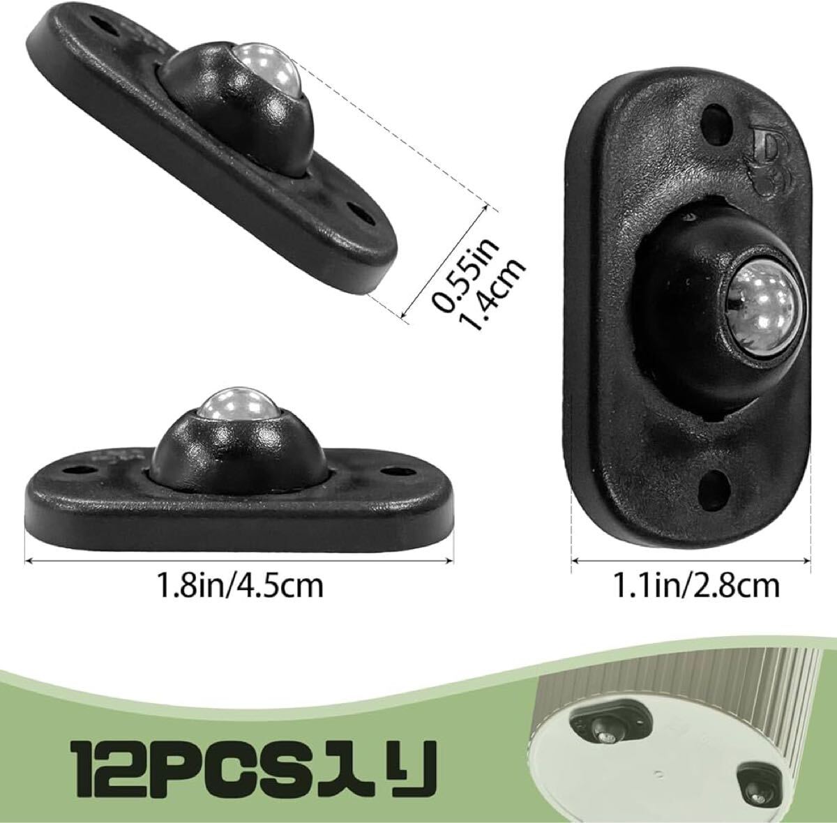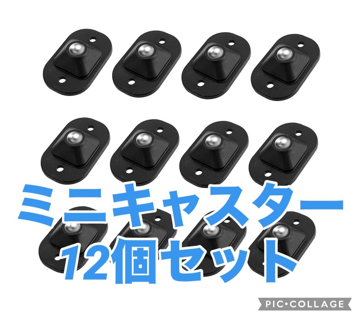 ミニキャスター 粘着タイプ 12個セット 家具 移動 キャスター ミニ型 黒 静音 貼るだけ 荷重約20kg 二面テープ付 ゴミ箱ホイール 粘着テープ式 収納ボックス 収納ケース キャスター ABS素材