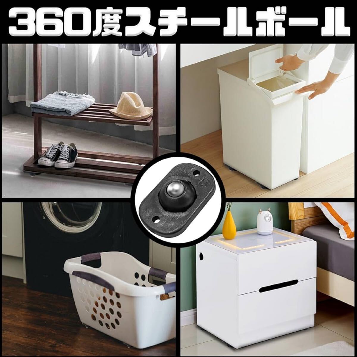 【360度スチールボール】安定した滑りのよいミニキャスター、360度に回転できるスチールボールを採用されたため、どんな方向に移動でもラクラク。スチール製なので、プラスチック製のものより耐摩耗性が優れています。摩耗に強くて長時間に使用するのに対応。静音タイプで音に敏感な方にオススメ。