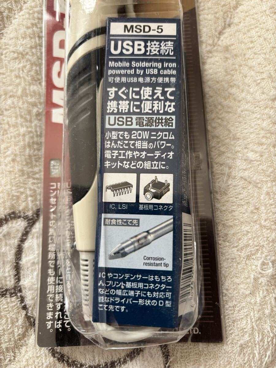 USB電源供給なのですぐに使えて携帯に便利。小型でも20Wニクロムはんだこて相当のパワー。ICやコンデンサーはもちろん、プリント基板用コネクターなど幅広の端子にも対応可能なドライバー形状のこて先。USB電源から電源が取れるので電池切れの心配なし。屋外や出先などコンセントの無い場所ではモバイルバッテリーに接続すれば使用可能。※本機をパソコン本体、およびパソコンに接続したUSBハブ等で使用しないでください。パソコン本体及び内蔵機器や接続機器の動作が不安定になる恐れがあります。またパソコンに接続して生じた損害については当社は一切の責任を負いません。※定格出力1A以上を安定して供給でき、供給がUSB2.0以下のUSB電源アダプタをご使用ください。