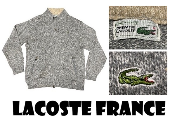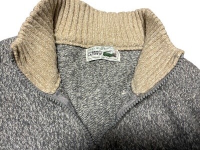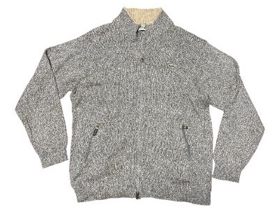 希少USA買付フランス製ラコステLACOSTE★コットン・ニット★ジップアップ・ジャケット★杢グレー★XL