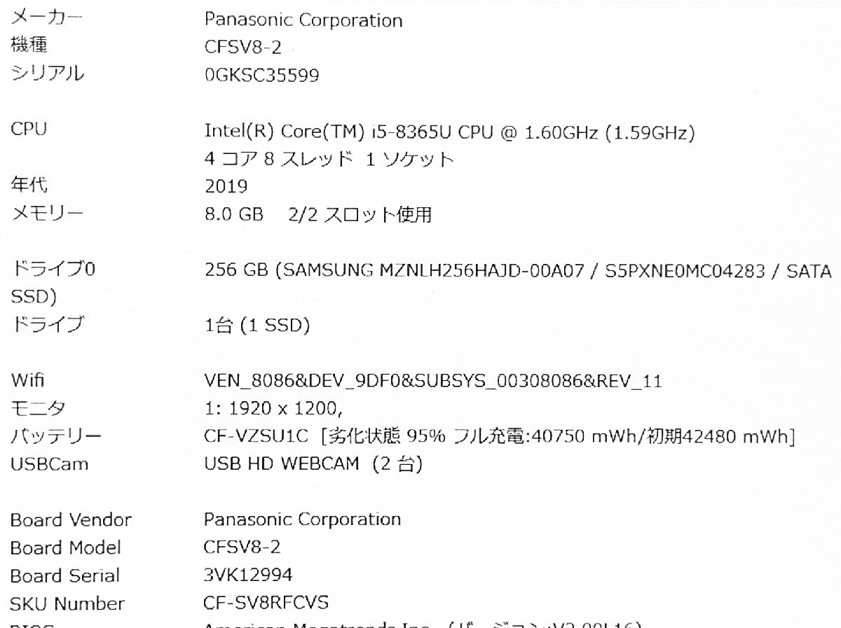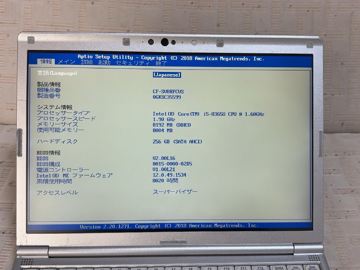 難あり Panasonic CF-SV8RFCVS Core i5-8365U メモリ8GB SSD256GB SK2511-24