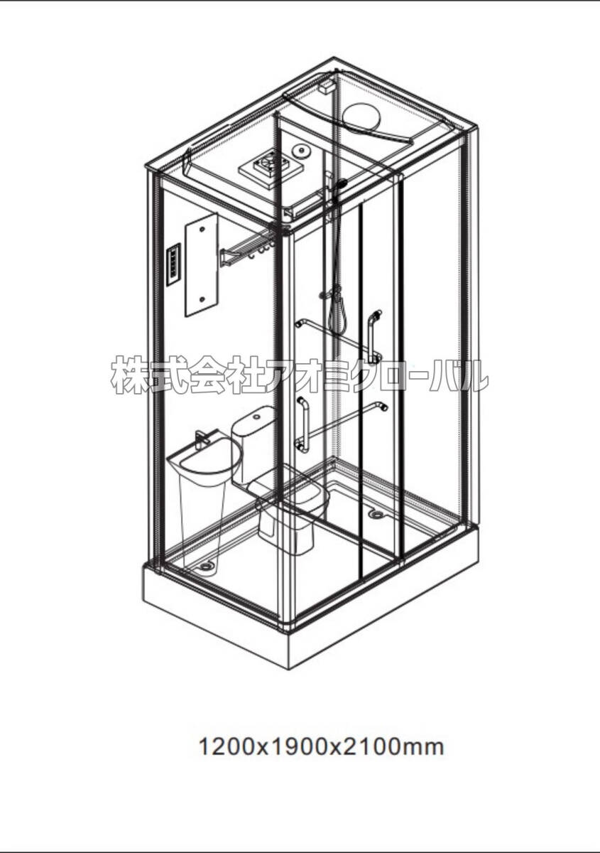 一体型シャワー&トイレユニットバスユニット組み立て式 洗面台付きコンパクト設計!W1.9×D1.2×H2.1m 便座付き 水回り