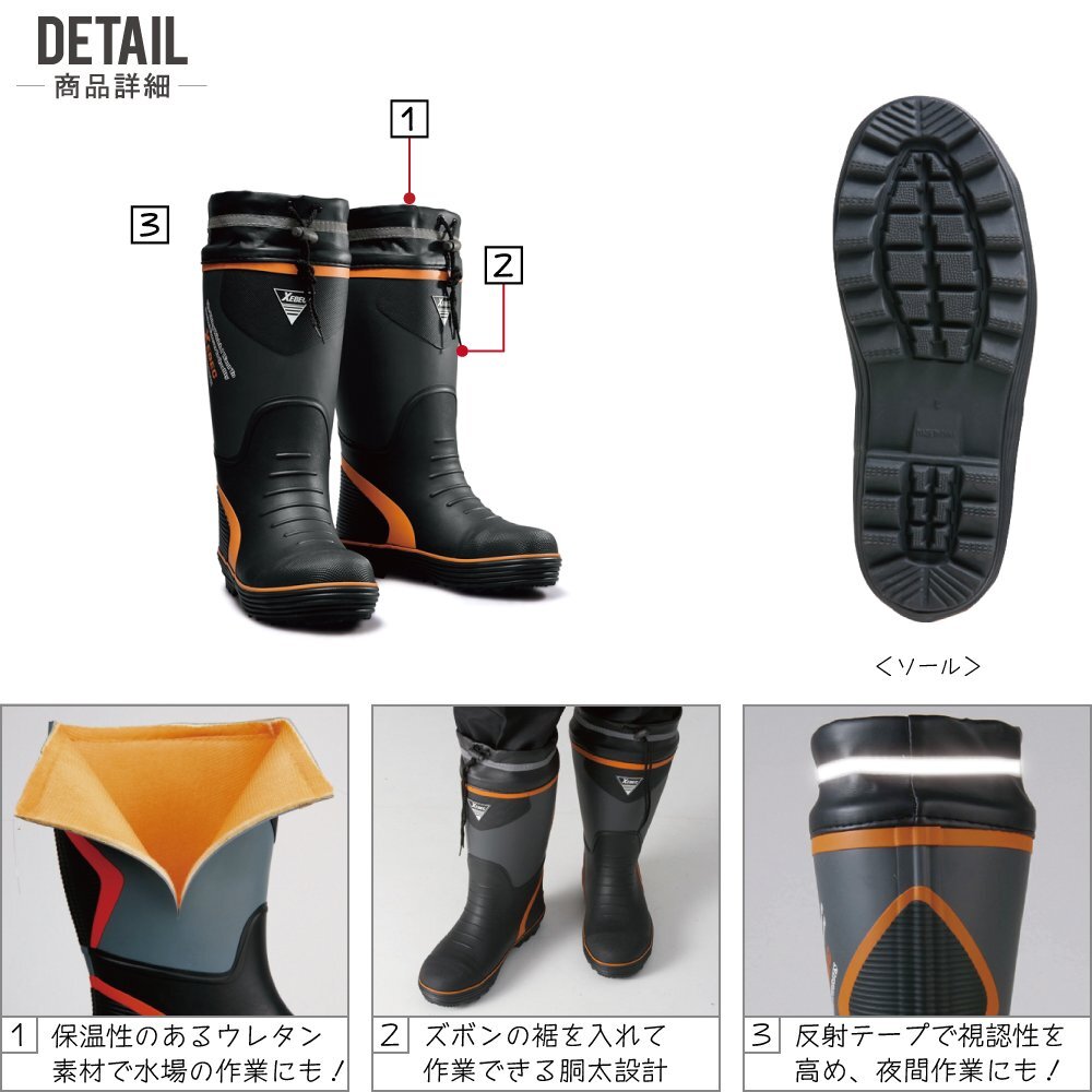 XEBEC 安全長靴 LLサイズ 26.5-27.0 先芯入り 85710 ゴム長靴 胴太設計 ブラック ジーベック ★ 対象2点 送料無料 ★