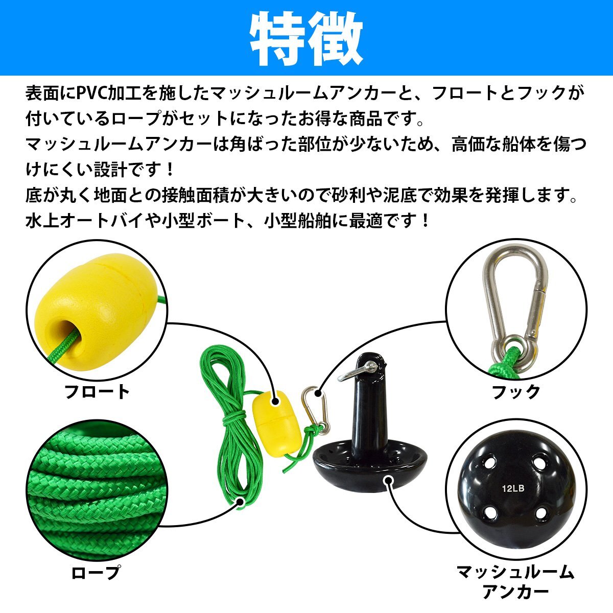 商 品 説 明アンカーロープ 6m お得なセットです♪