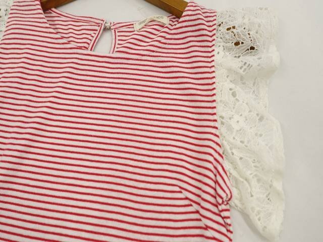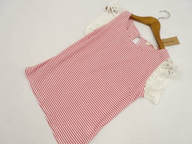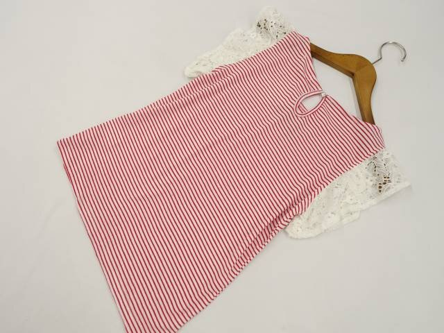 ノースリーブ ラウンドネック カットソー M レッド×ホワイト ボーダー柄 【メール便可】