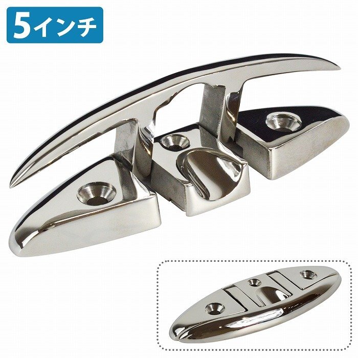 【送料無料】折りたたみ式 フラット クリート 5インチ 127mm 316 ステンレス製 船 ボート カヤック マリン 係留 フリップアップクリート
