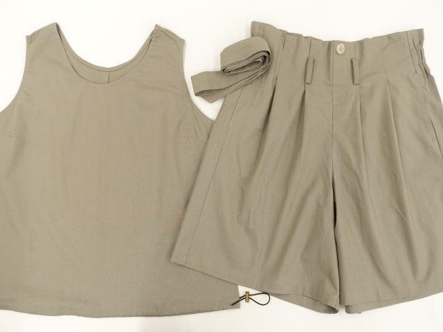 ノースリーブカットソー+キュロットパンツ 上下2点セット 3L-4L カーキ