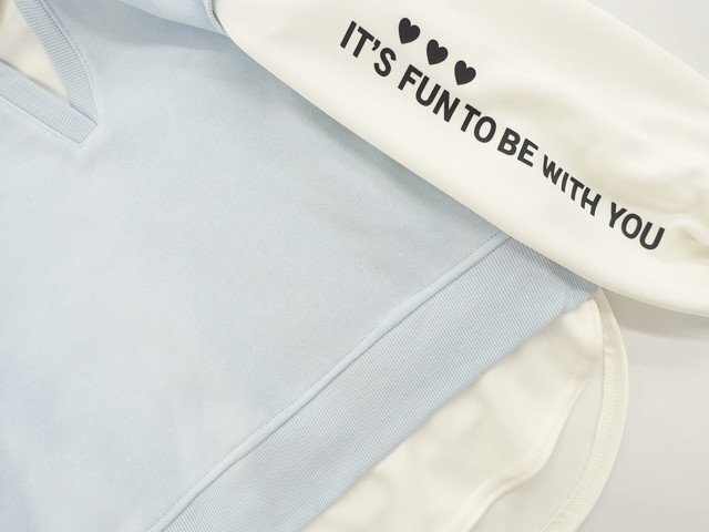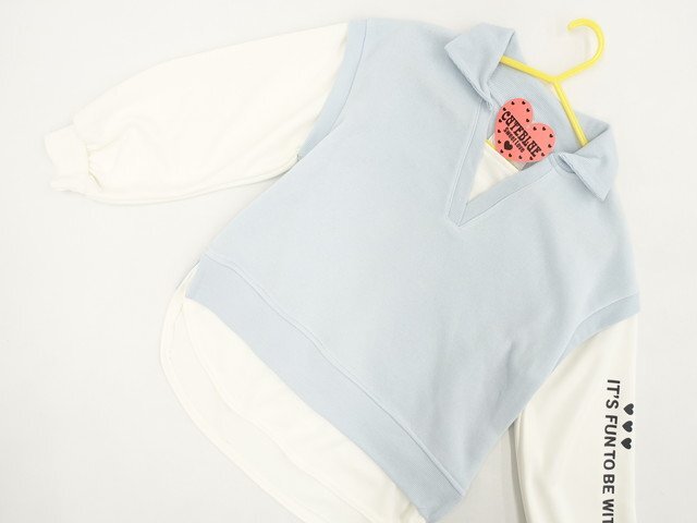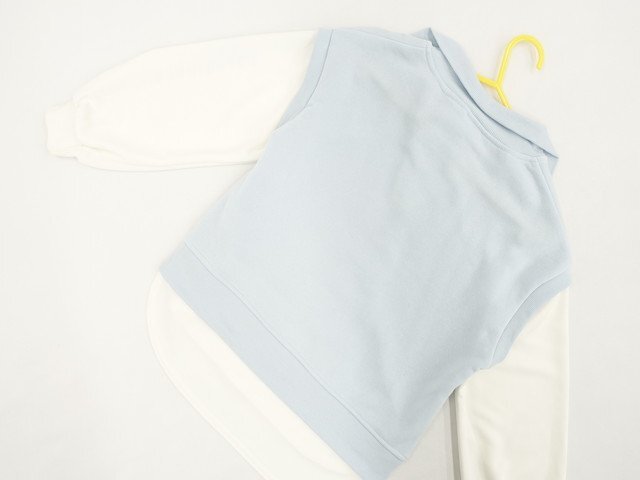 長袖 裏起毛フェイクレイヤードカットソー 140 ライトブルー/ホワイト地×ブラック 英字