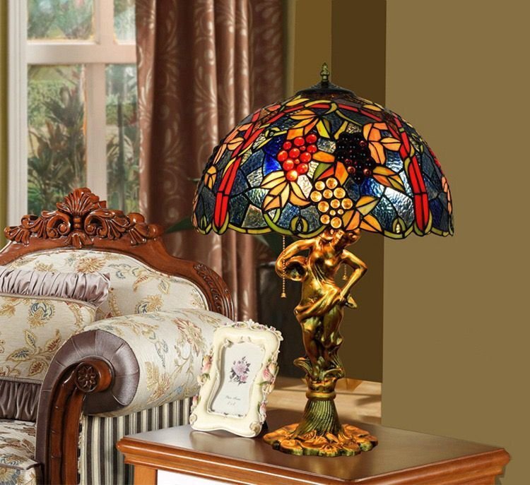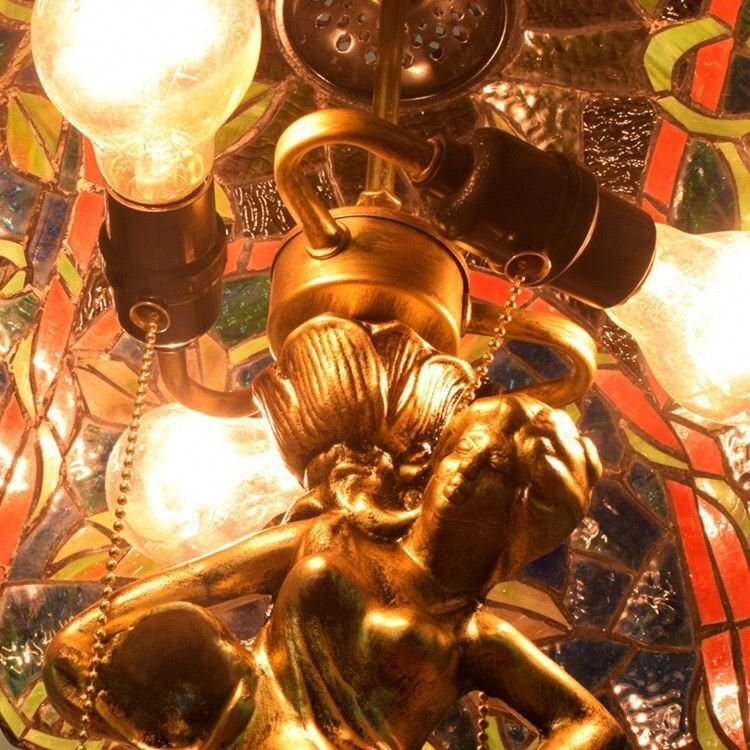 美品☆【ステンドランプ ステンドグラス アンティーク 花柄】レトロな雰囲気がおしゃれ★ヴィンテージ ティファニー 照明 zchw0002