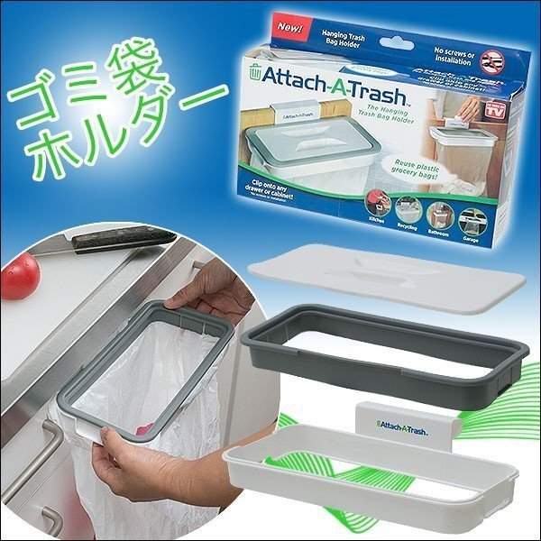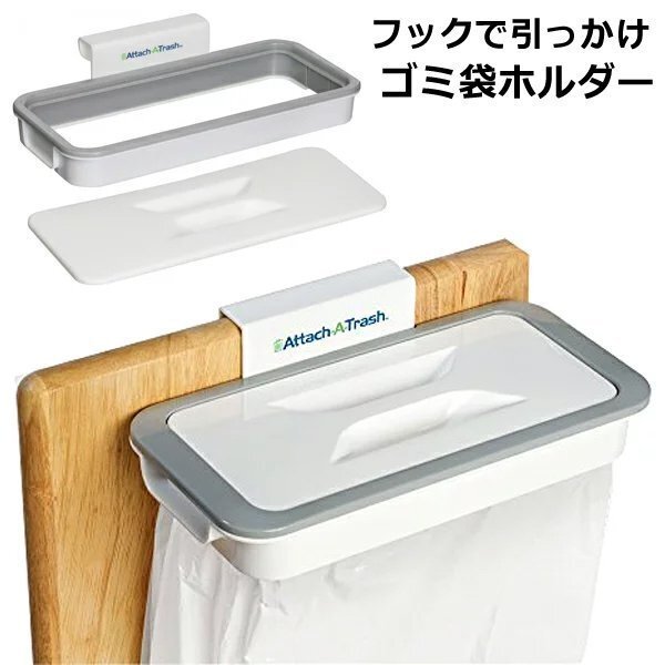 | ● どこにでも着脱簡単 ・・・ フックで引っ掛けるだけ。 ● 便利なフタ付き ・・・ 中身の飛び散り防止、ニオイも軽減。 ● 省スペースで収納上手 ・・・ 枠だけだから片付けもラクラク。 |