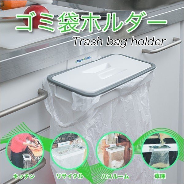 | スペースが狭くてゴミ箱が置けない!レジャーにゴミ箱なんて持っていけない! そんなお悩みは「 ゴミ袋ホルダー 」で解決! ビニール袋を枠にセットして、フックで引っ掛けるだけ。 袋の口を広げたまま固定できるので、ゴミ捨てがラクラク! キッチンの調理台下に取り付けて、野菜のクズを捨てたり、 タンスや棚、学習机のヨコなどのデッドスペースを有効活用したり、 BBQやキャンプなど、アウトドアレジャーでのゴミの分別にも◎ 本体は省スペースだから、設置も持ち運びもお手軽。 換えの袋だけ用意すればいいので、とっても便利です♪ |