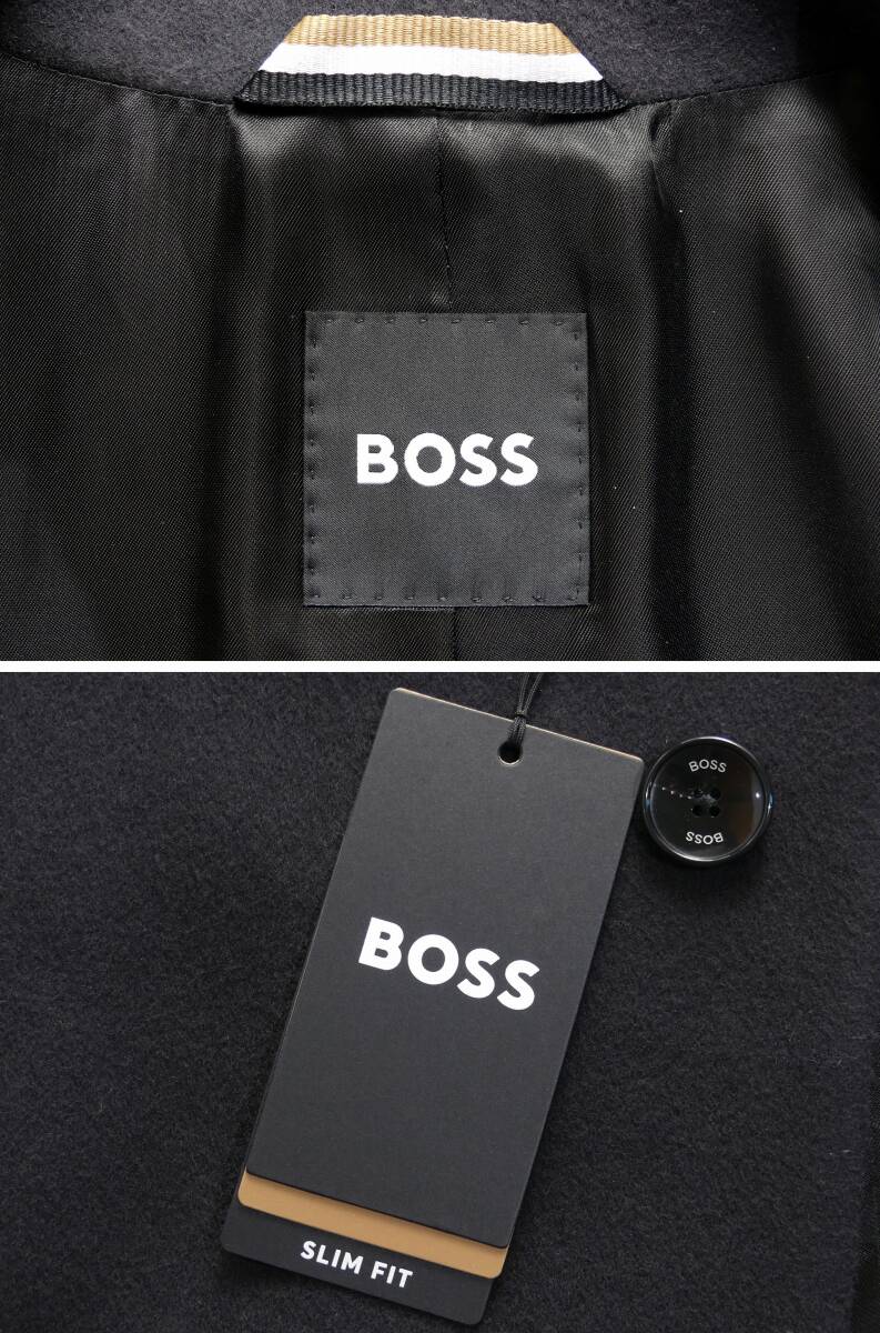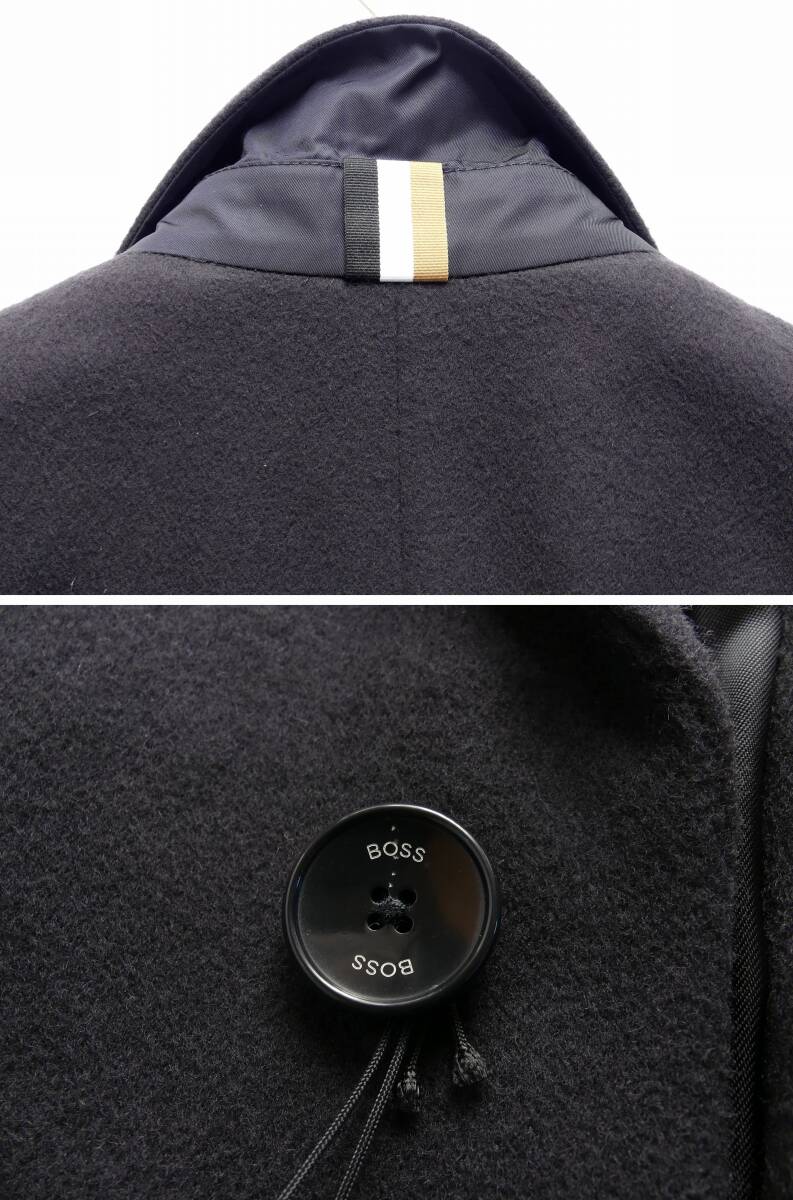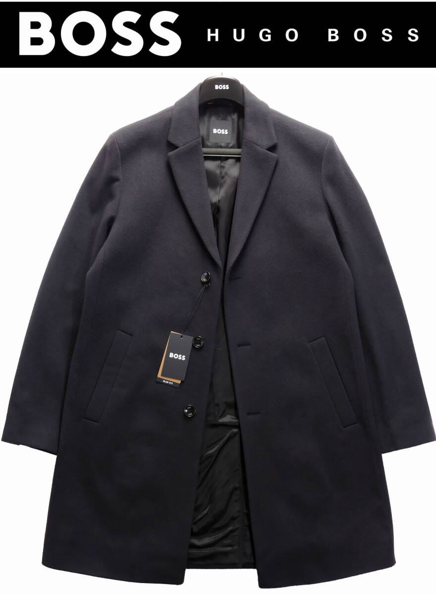 秋冬物新品129,800円HUGO BOSSボス★使える度もお洒落度も200%。柔らかく軽いフランネル濃紺チェスターコート【50=日本L】