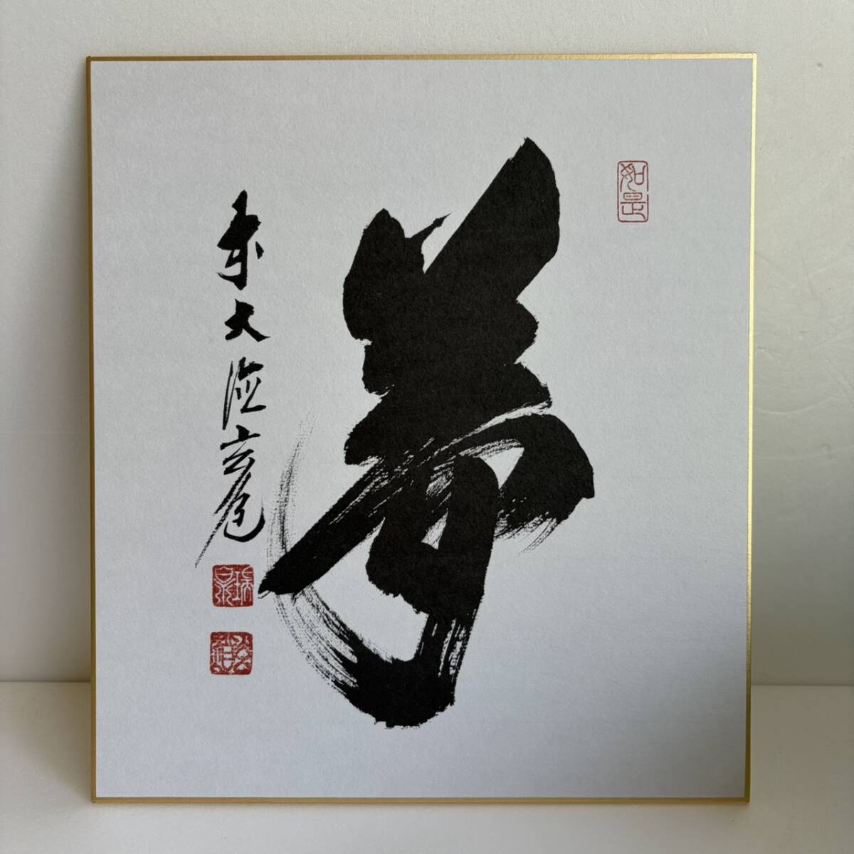 また、色紙を保管する袋と色紙を保護する板紙が一部付着しており、破れあります。色紙は無傷です。