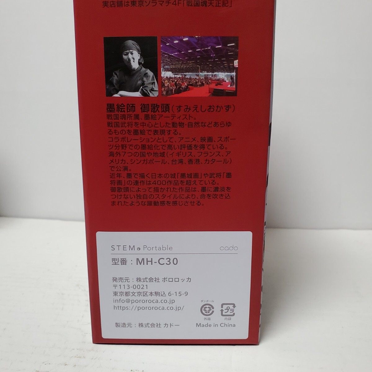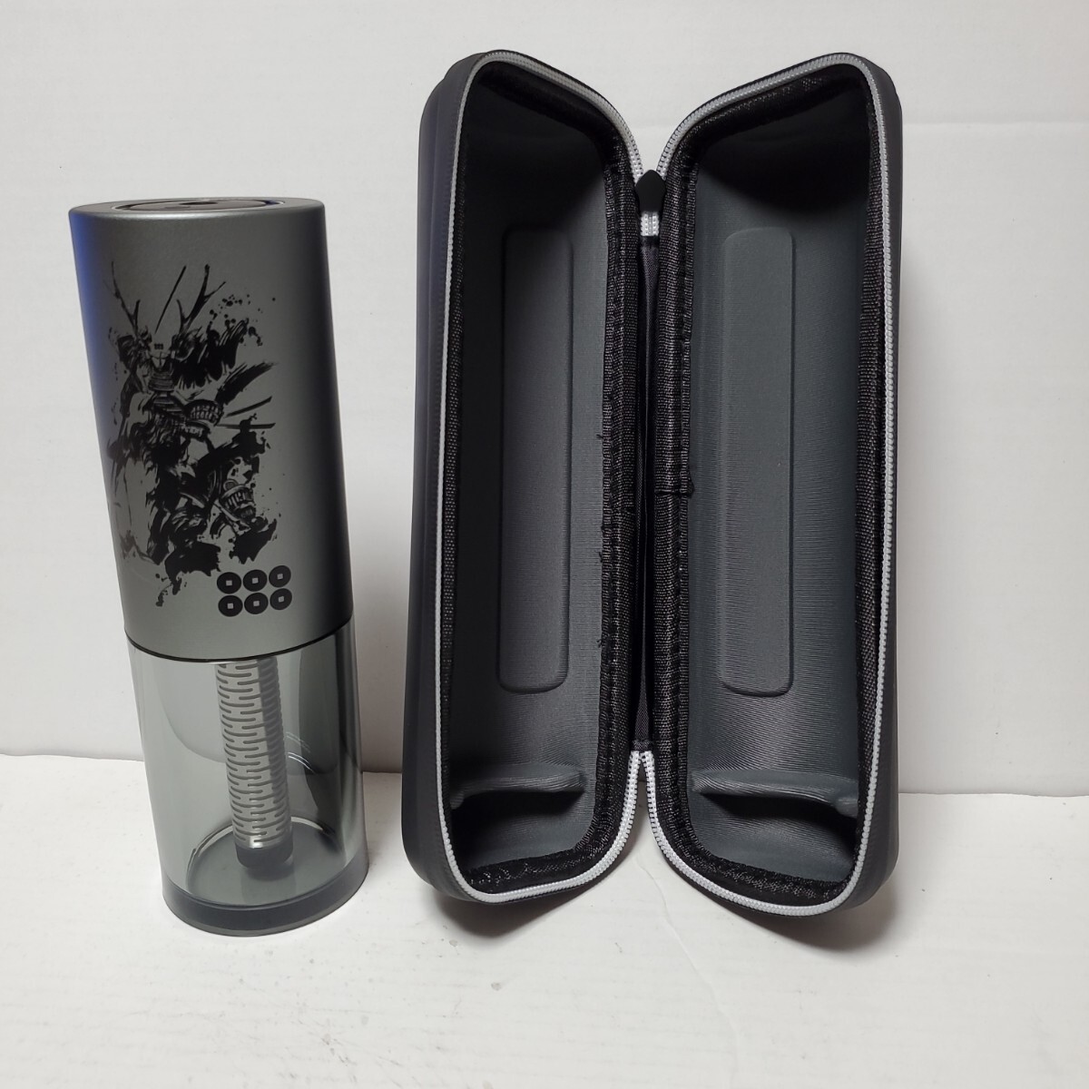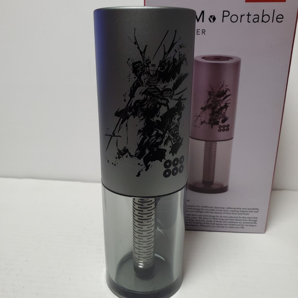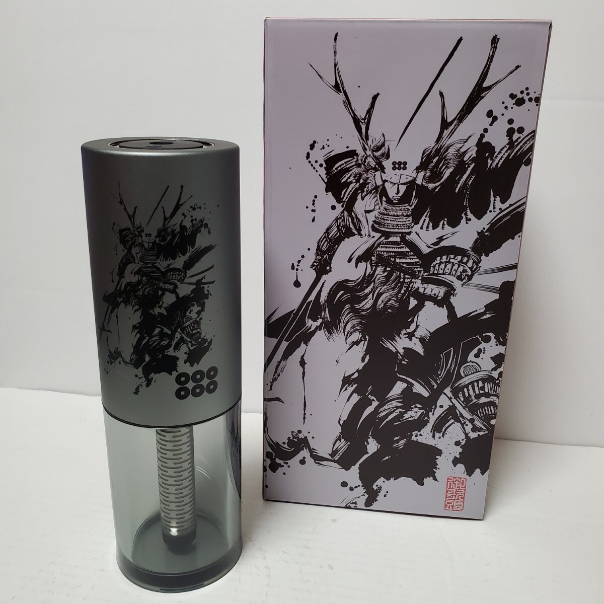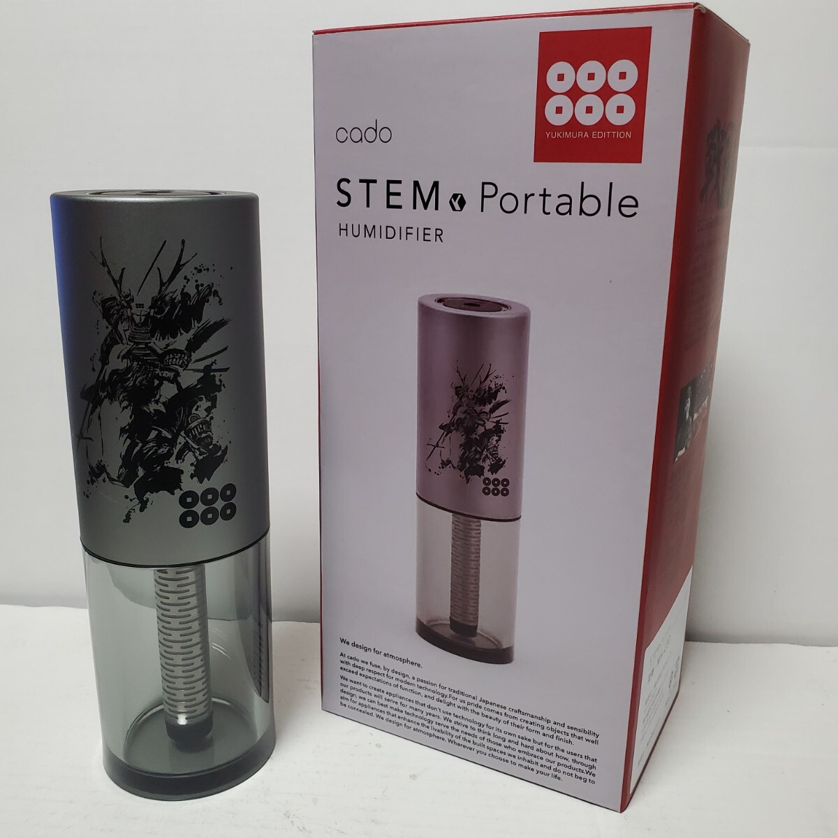 このcado STEM Portable加湿器は、武士のアートが施されたユニークなデザインが特徴です。シルバーのボディと透明な下部がスタイリッシュで、インテリアにマッチします。