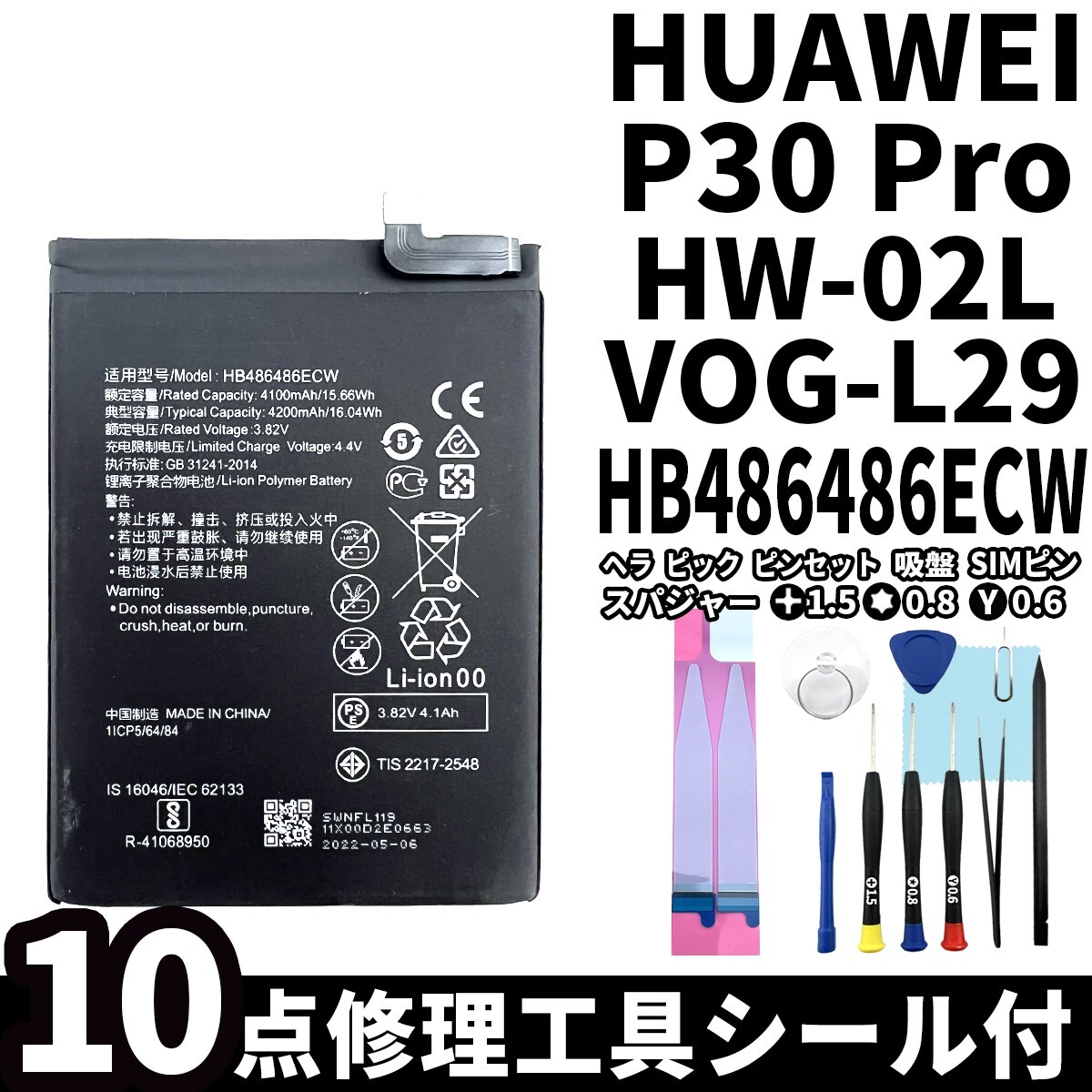 ★HUAWEI P30 Pro バッテリー交換 HW-02L VOG-L29 HB486486ECW 電池パック交換キット battery repair 電池交換専用両面テープ 修理工具付セット★