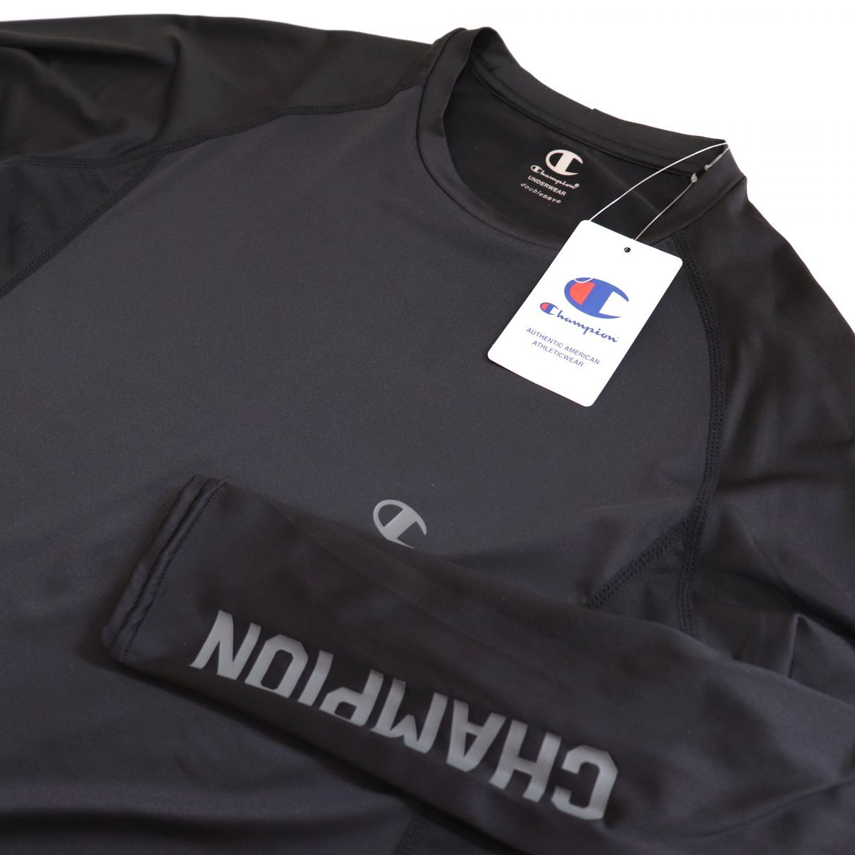 ○送料390円可能商品 チャンピオン Champion 新品 メンズ クルーネック 長袖 コンプレッション シャツ 黒 L [CM4HZ265M-090-L] 三 弐★QWER