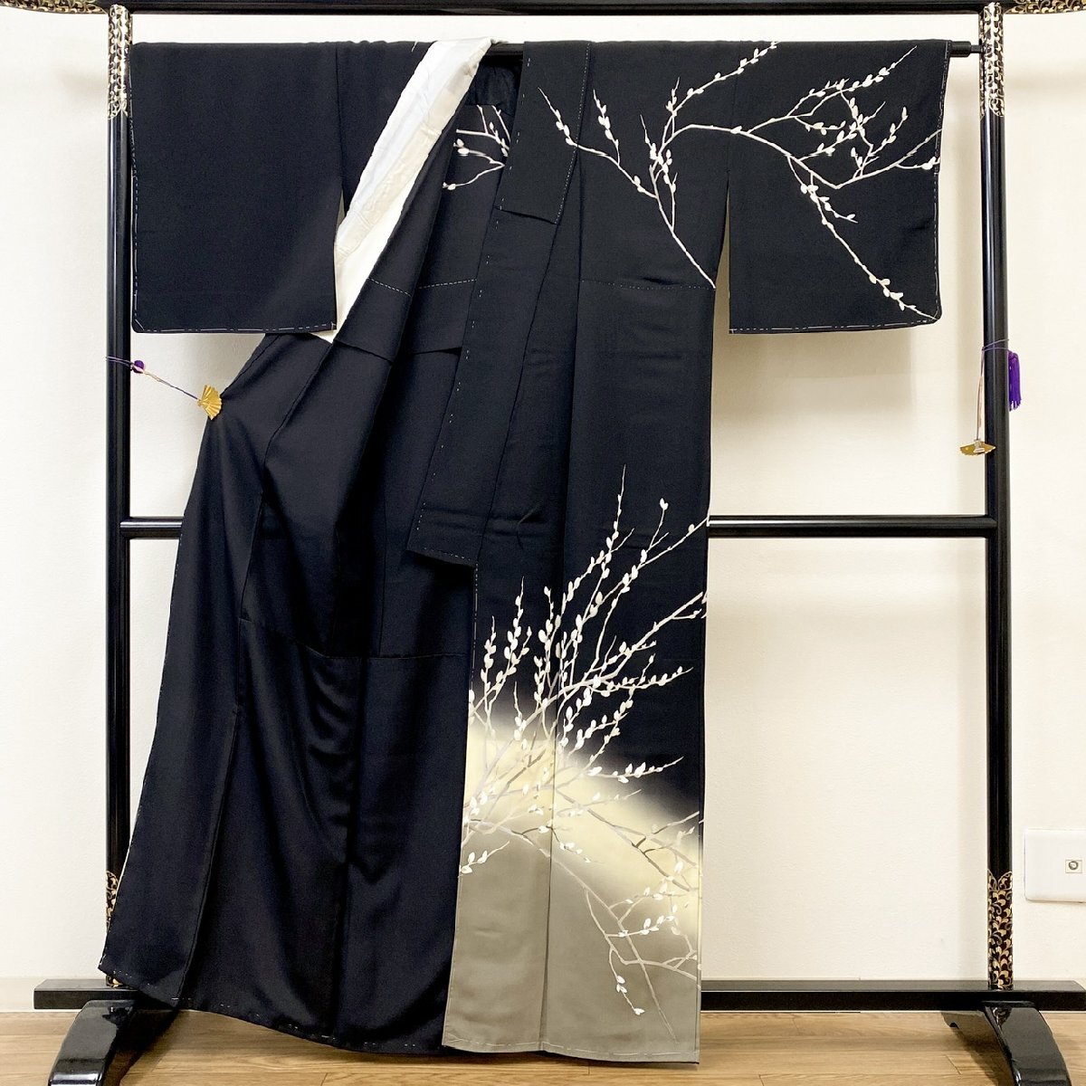 未使用品で軽いシワ、八掛に汚れはございますが着用の際に目立つ汚れはなく状態は概ね良好です。