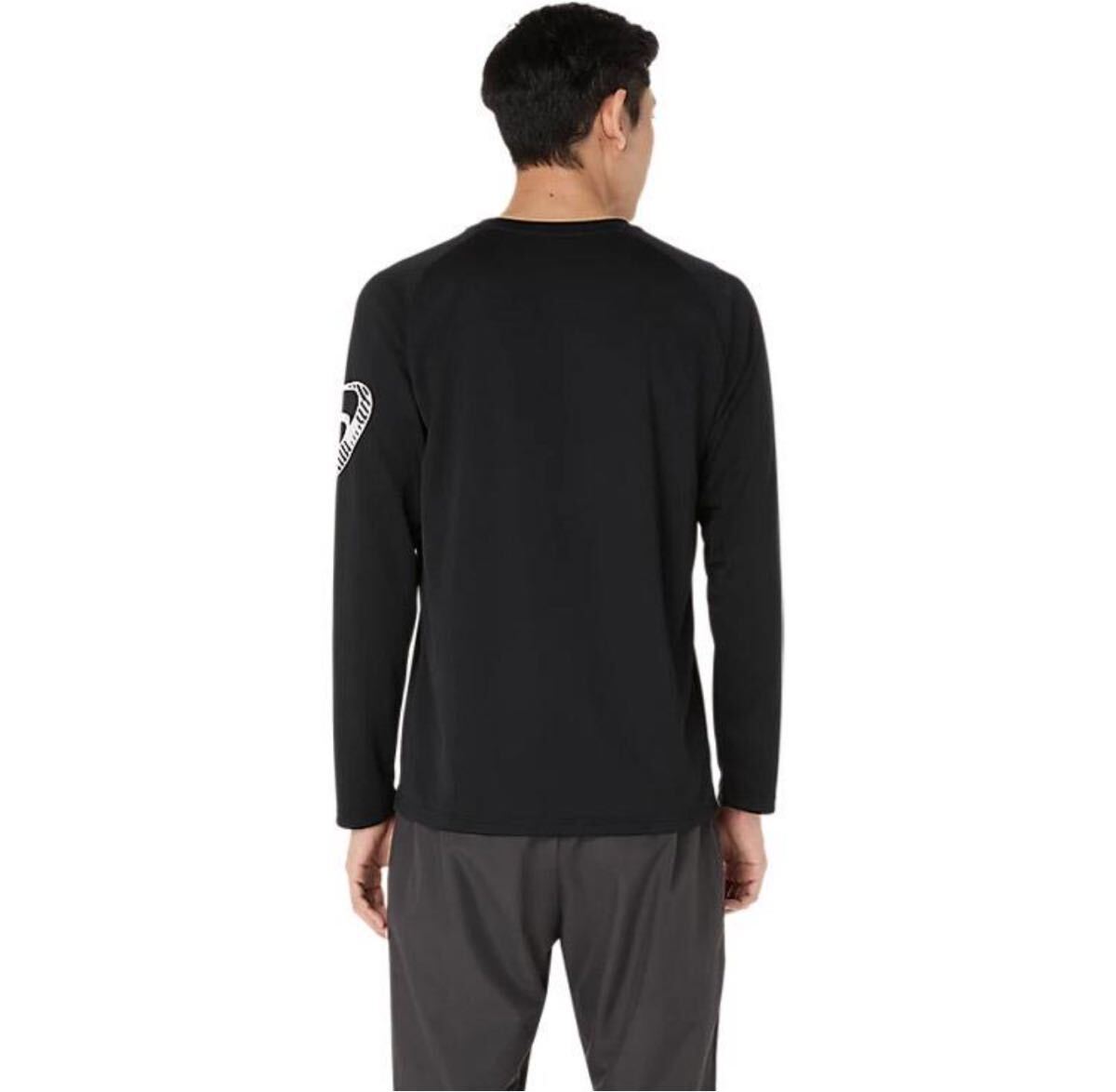 吸汗速乾性に優れたポリエステニット素材の長袖シャツ ◇左袖部分にアシックススパイラルを採用 グラフィックコンセプトにASICS JAPONIZMを採用 吸汗速乾性を追求したポリエステルニット素材を採用 アシックススパイラルウーブンラベルデザインのアクセントに