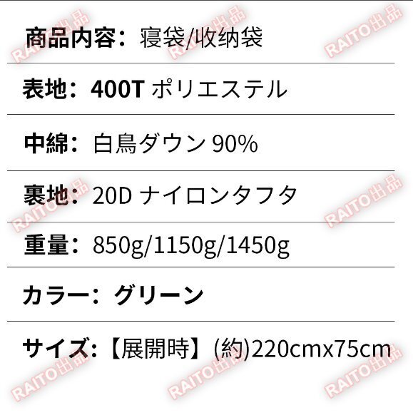 高品質 寝袋 グースダウン95% -15℃対応 マミー型 冬用2.5kg 羽毛 400T撥水加工 コンパクト アウトドア キャンプ 車中泊 収納袋付bhw020