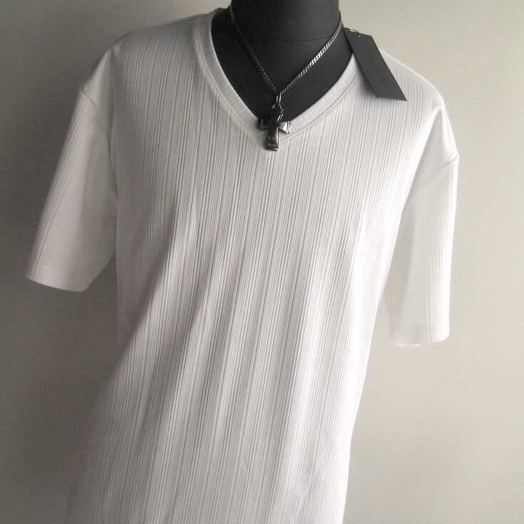 ■繊細な針抜きテレコの素材感でソリッドな印象のVネック半袖カットソー