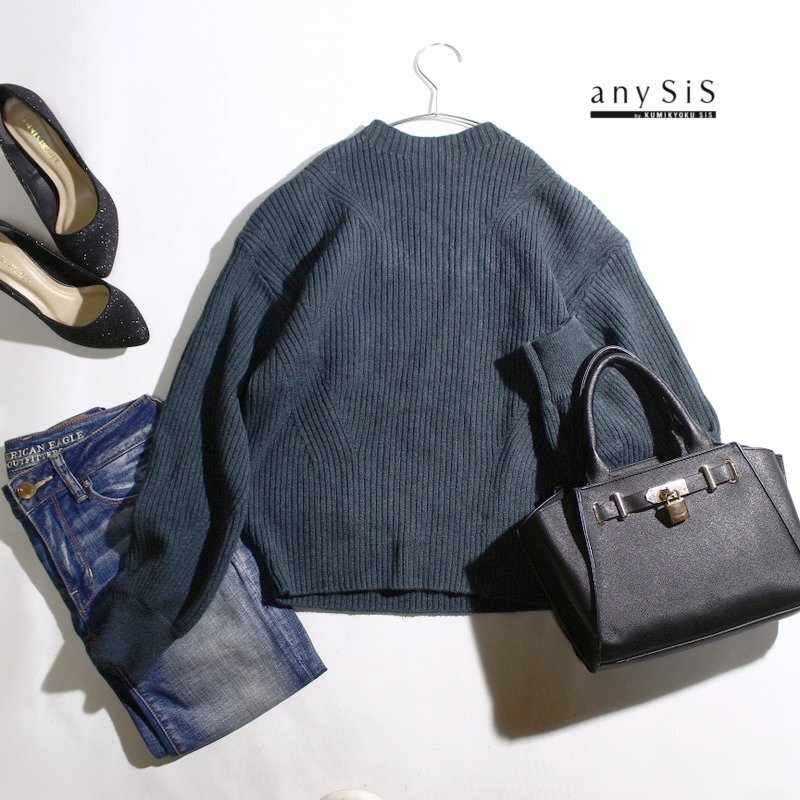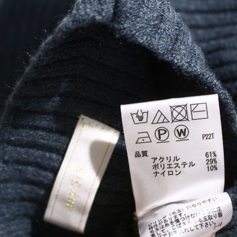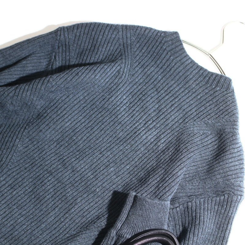 美品 エニィスィス any SiS 組曲 株)オンワード樫山 大きいサイズ4 冬 ゆったり ハイネック リブ ニットセーター XL くすみ ネイビー 紺
