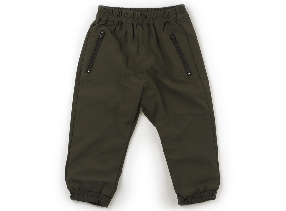 ナイロンのシャカシャカ地。ウエストは総ゴムです。前裾にペン汚れの跡あり。まだまだお使い頂けそうです。品質タグにシールはがし跡のノリ残りあり。