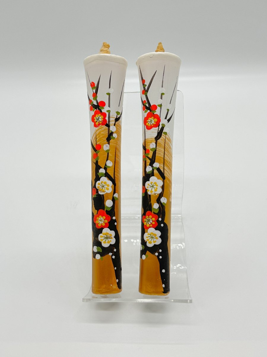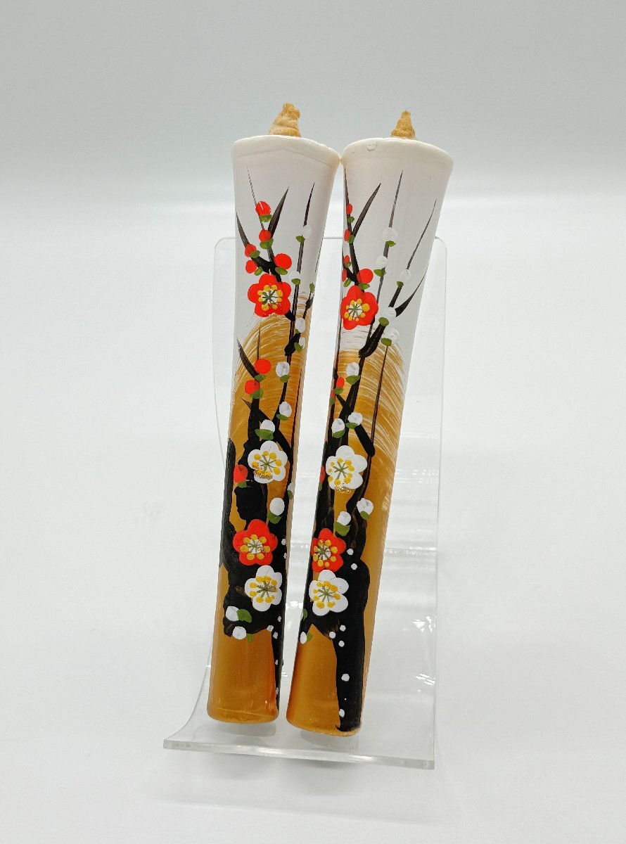 【三枝堂】新品 手書き絵ローソク 「梅」 2本入り 和ローソク(高さ 約15cm)☆送料は当社負担☆