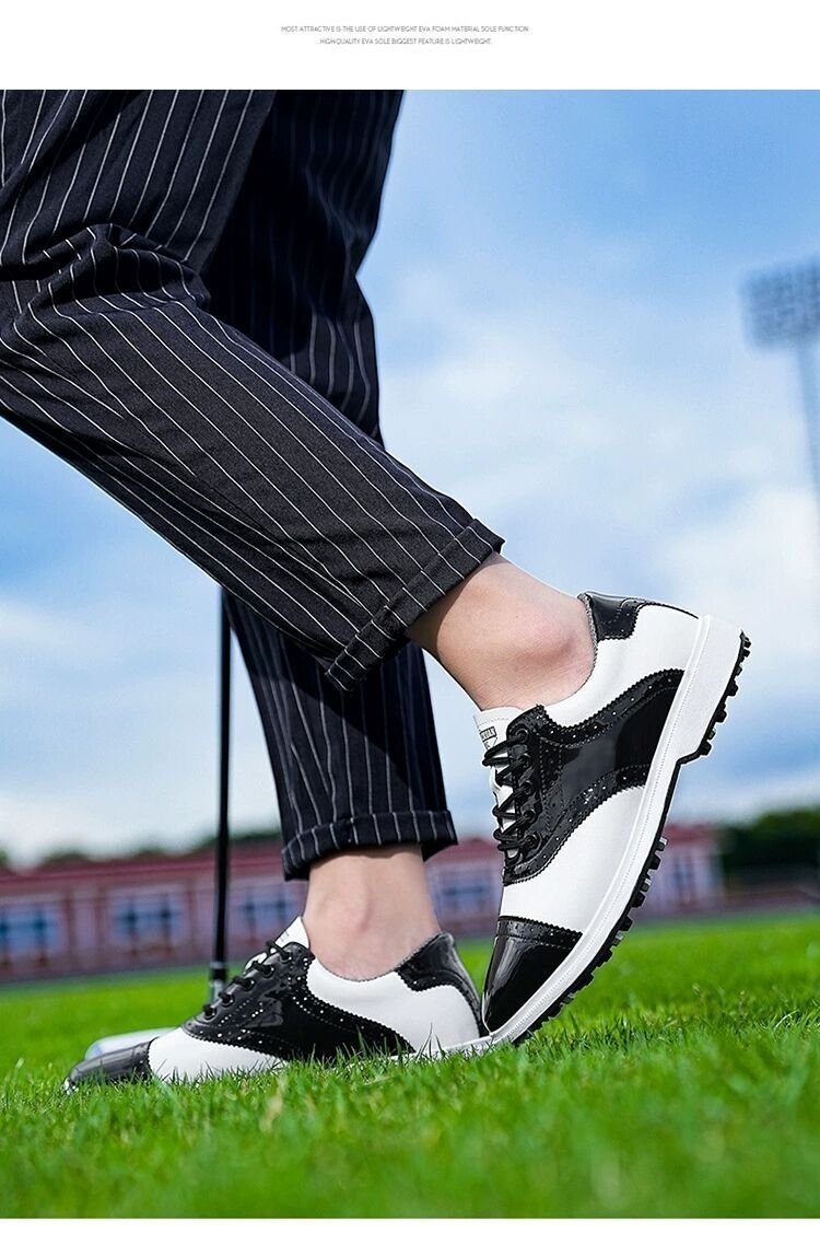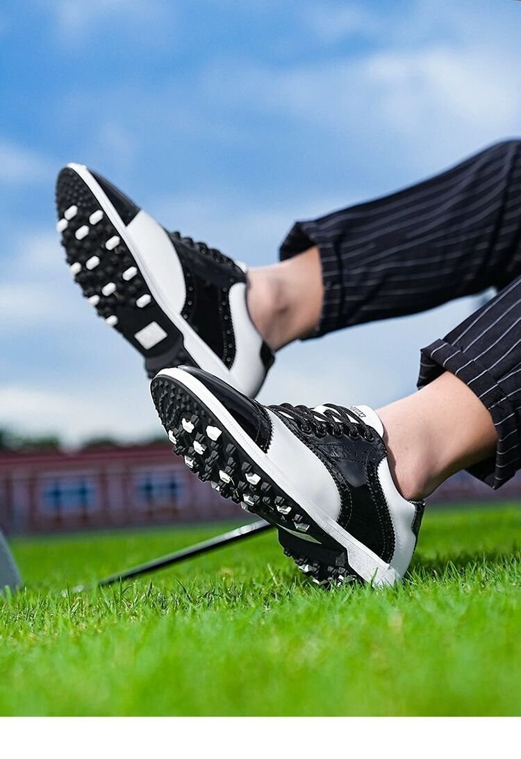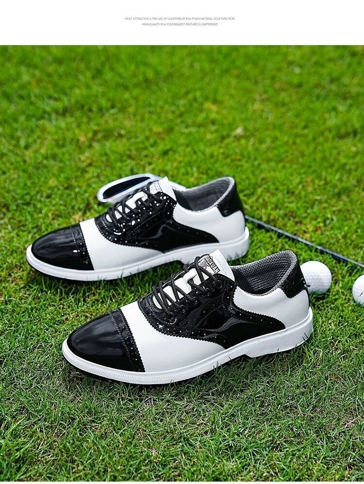 GRF-8668/39白黒 絶賛39-47選 ゴルフシューズ スポーツシューズ メンズ ソフトスパイク イギリス風 フィット感 防水 スニーカー 紳士靴