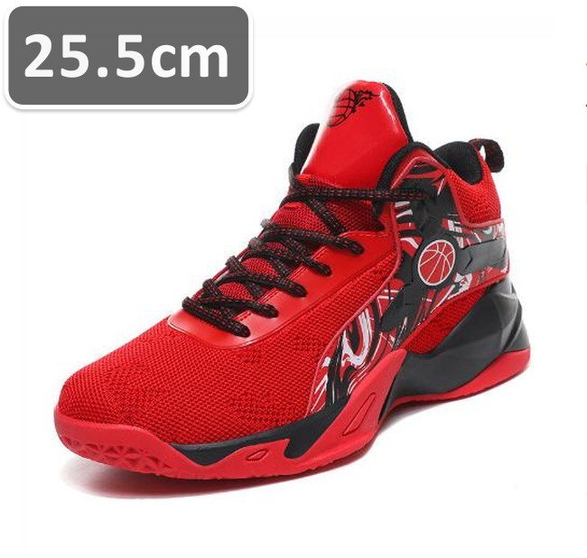 メンズ スニーカー レッド 25.5cm 靴 シューズ 防滑 バスケットシューズ 通勤 通学 旅行 【238】