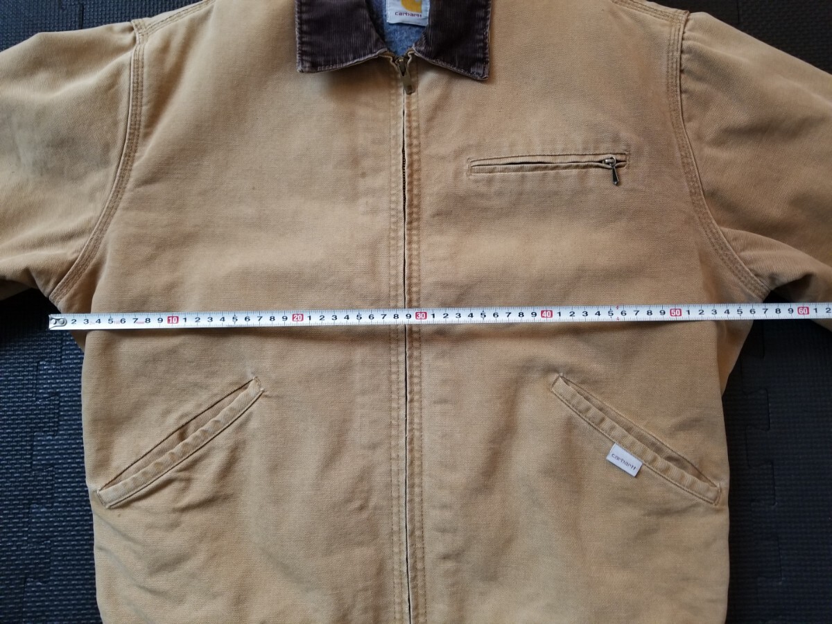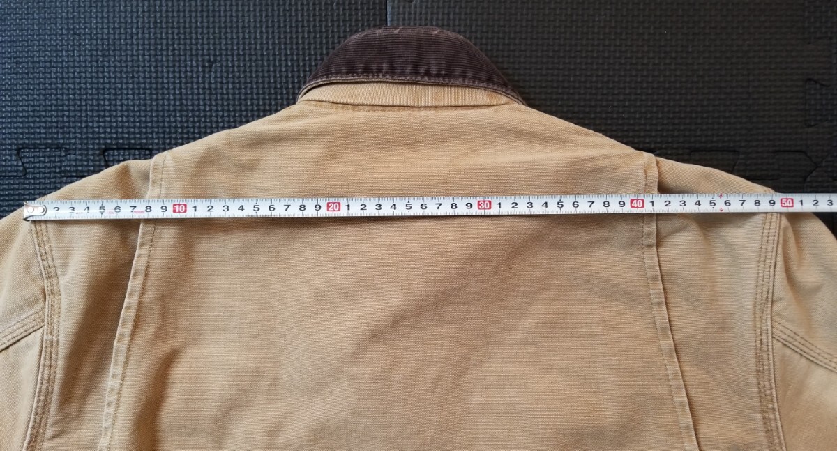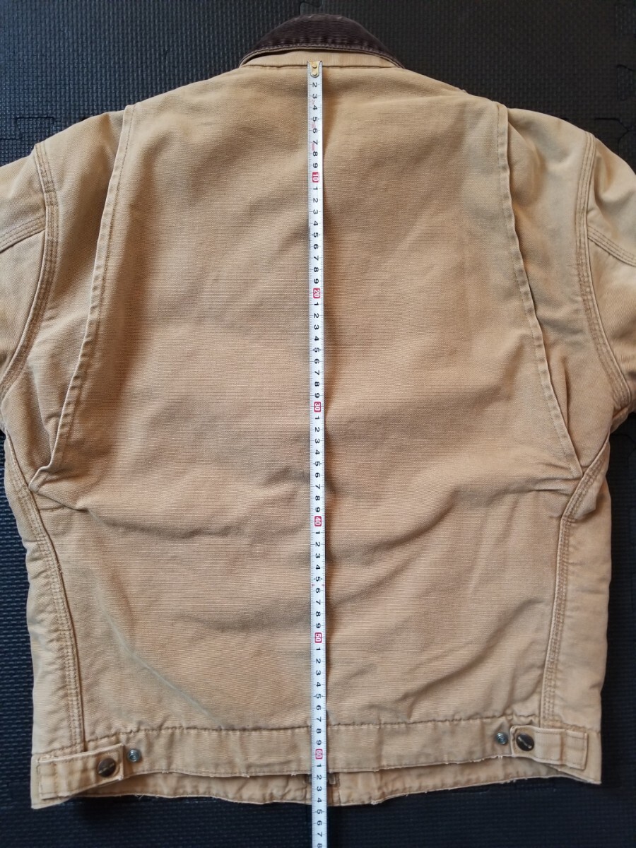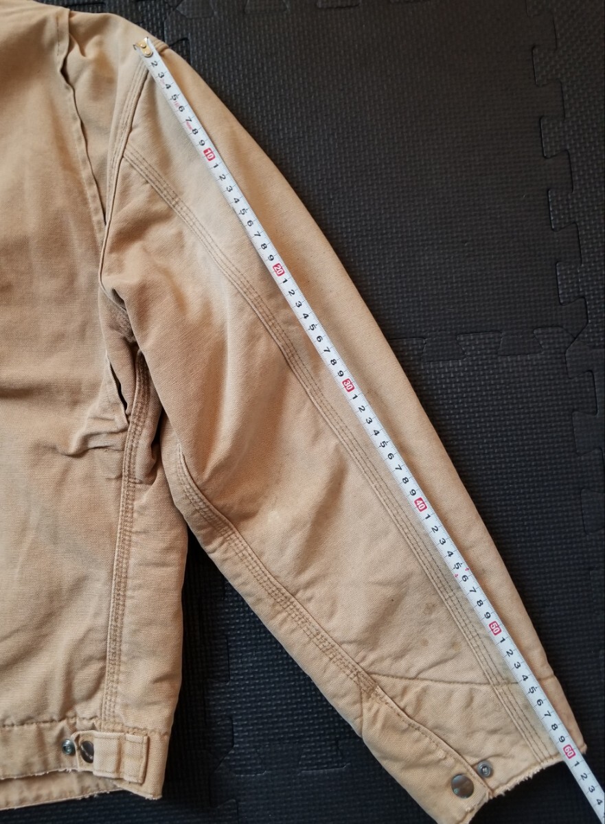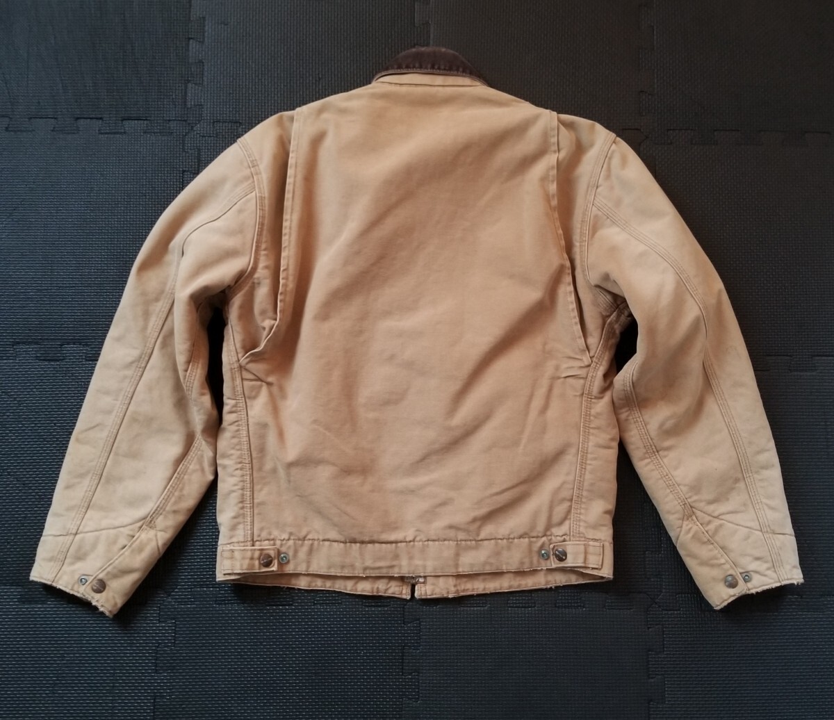 古い物なので汚れシミほつれ等あります サイズはM~L位だと思いますがタグ表記が消えてしまったので実測を参考にしてください 画像だとわかりにくいですが肩から袖の上面色落ちがあります 背中右側の折り返しステッチがほつれたので補修しました 右ポケット内にシミがあります