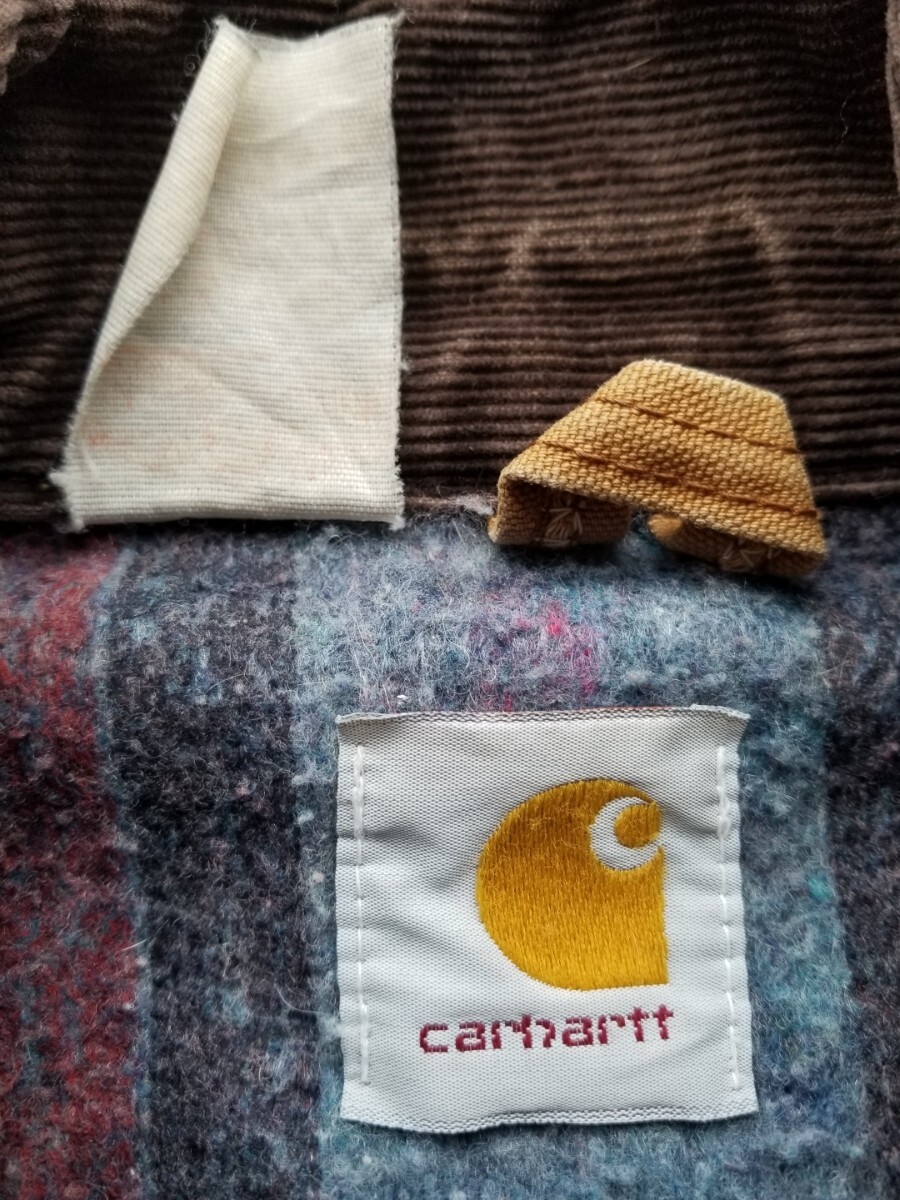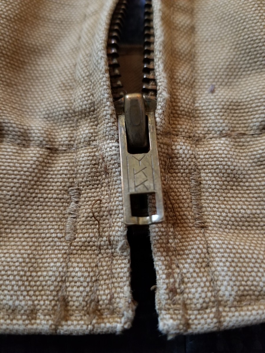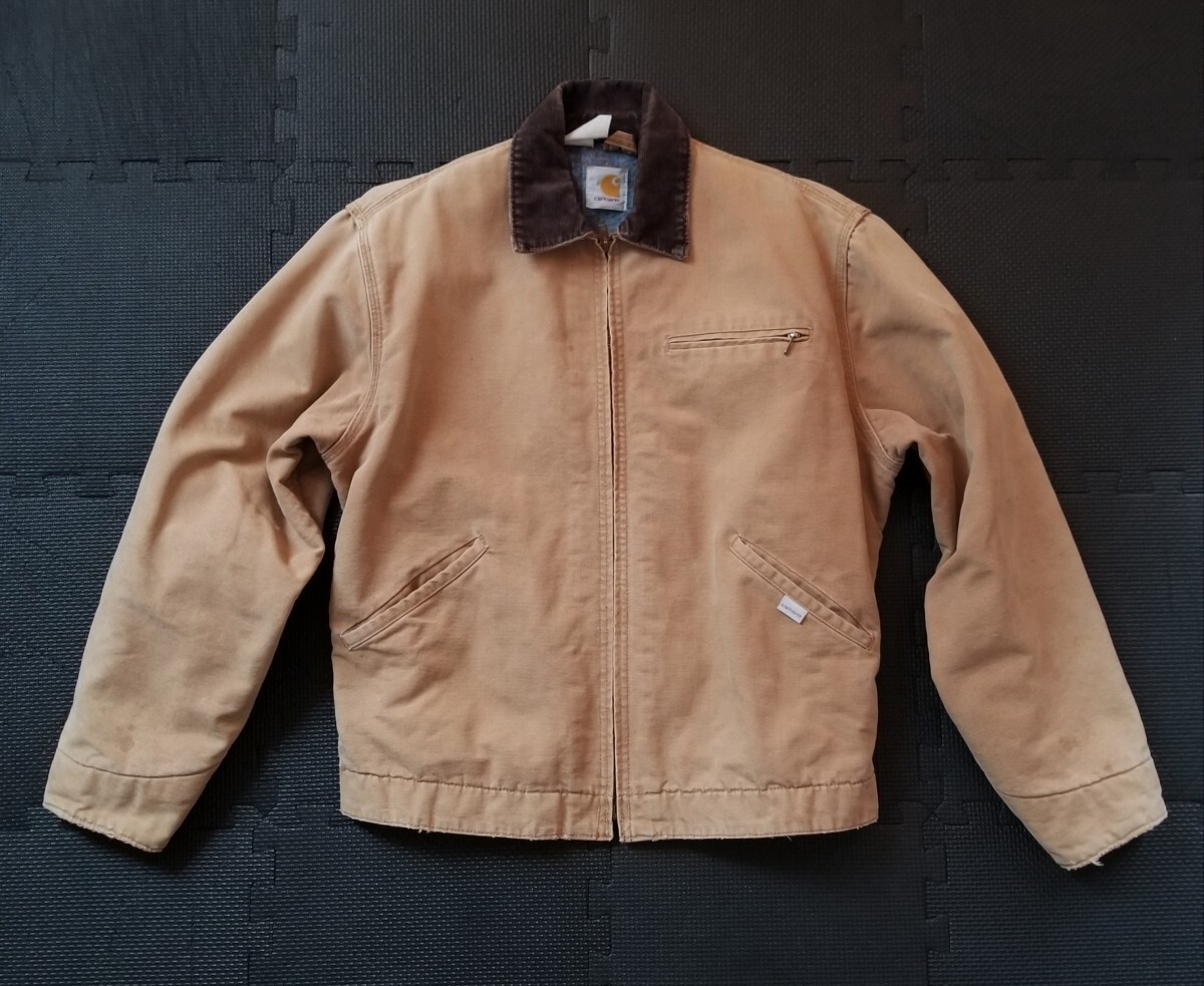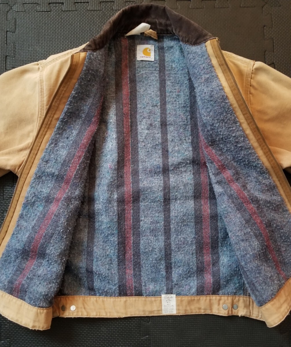 古い物なので汚れシミほつれ等あります サイズはM~L位だと思いますがタグ表記が消えてしまったので実測を参考にしてください 画像だとわかりにくいですが肩から袖の上面色落ちがあります 背中右側の折り返しステッチがほつれたので補修しました 右ポケット内にシミがあります