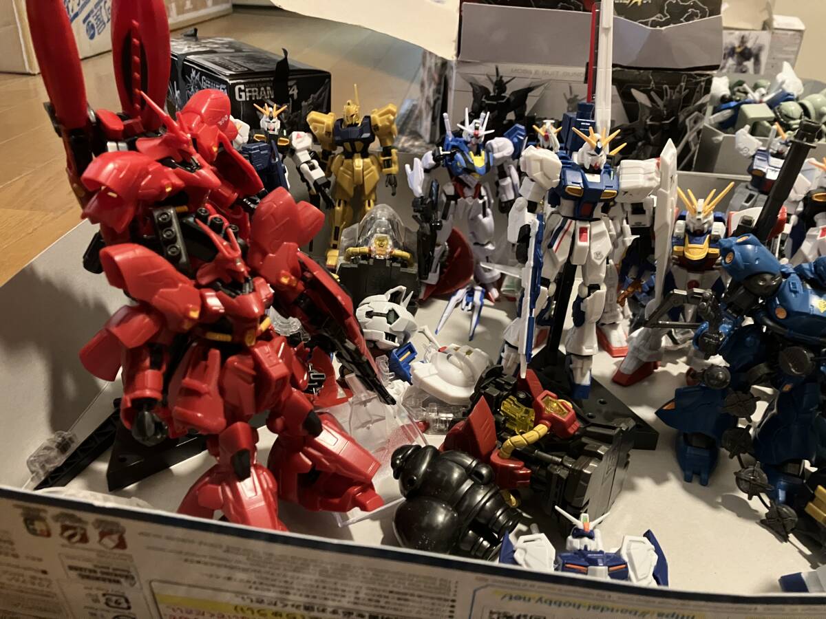 画像9,10に写っているニューガンダム&サザビーの追加パーツは箱から出していません。