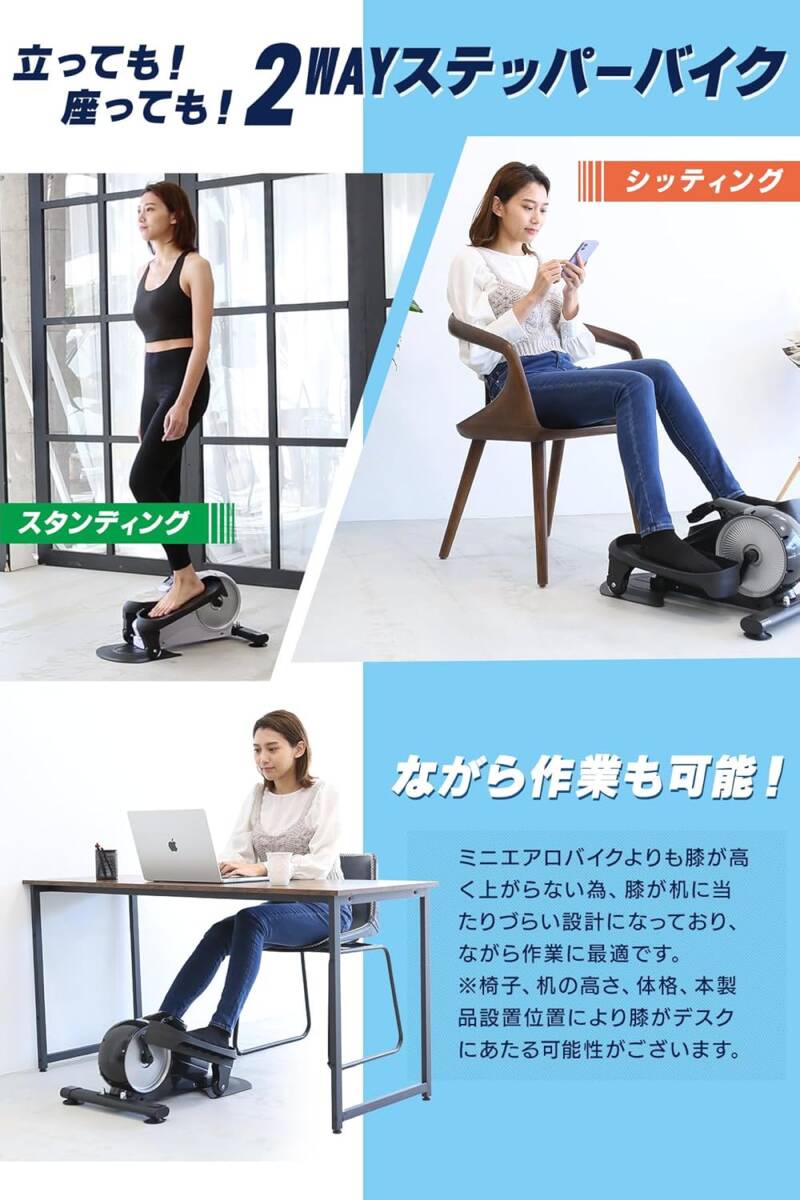 メプサス 2WAYステッパーバイク 立・座 スタンディング シッティング 2WAY エアロバイク ステッパー 静音 有酸素運動 立ち漕ぎ
