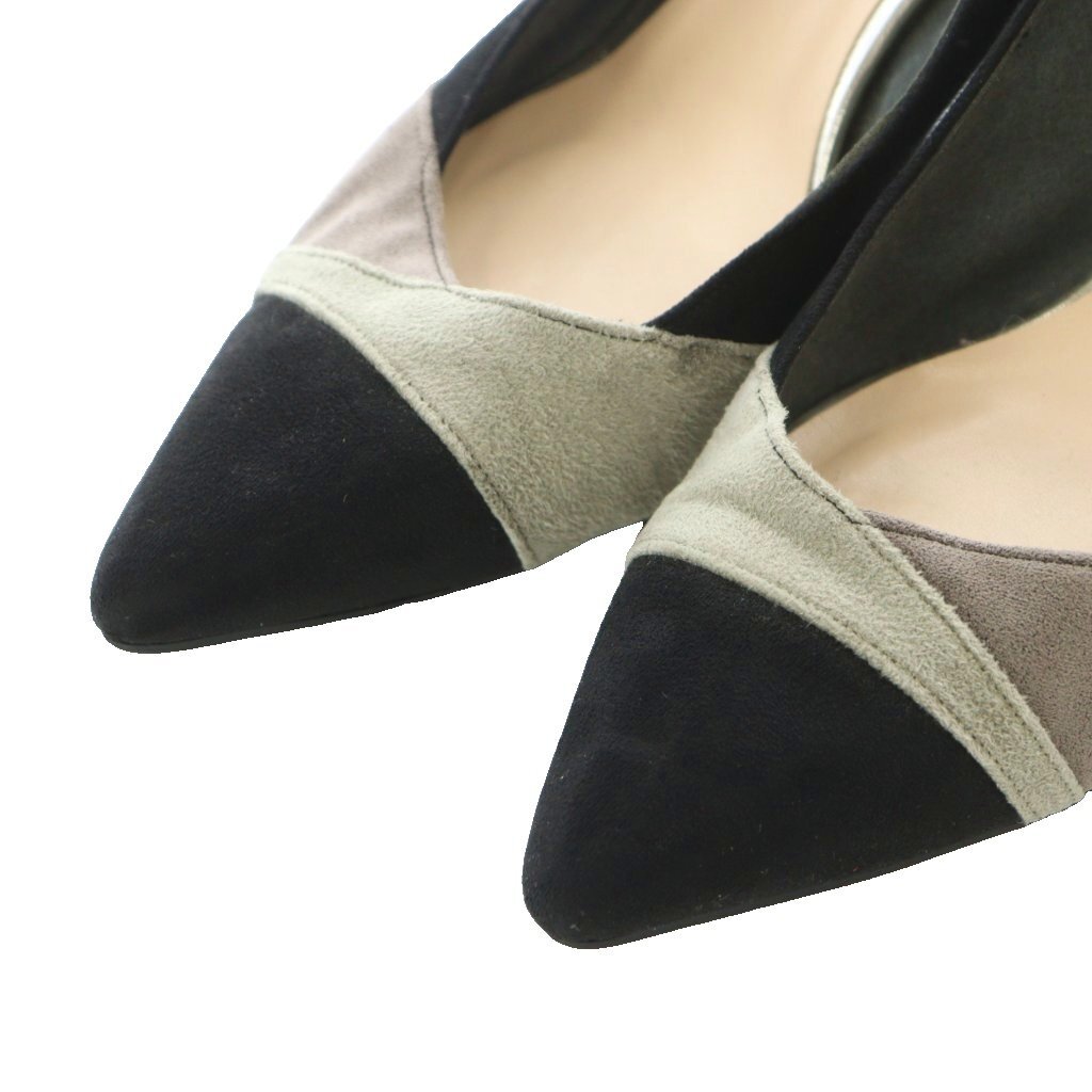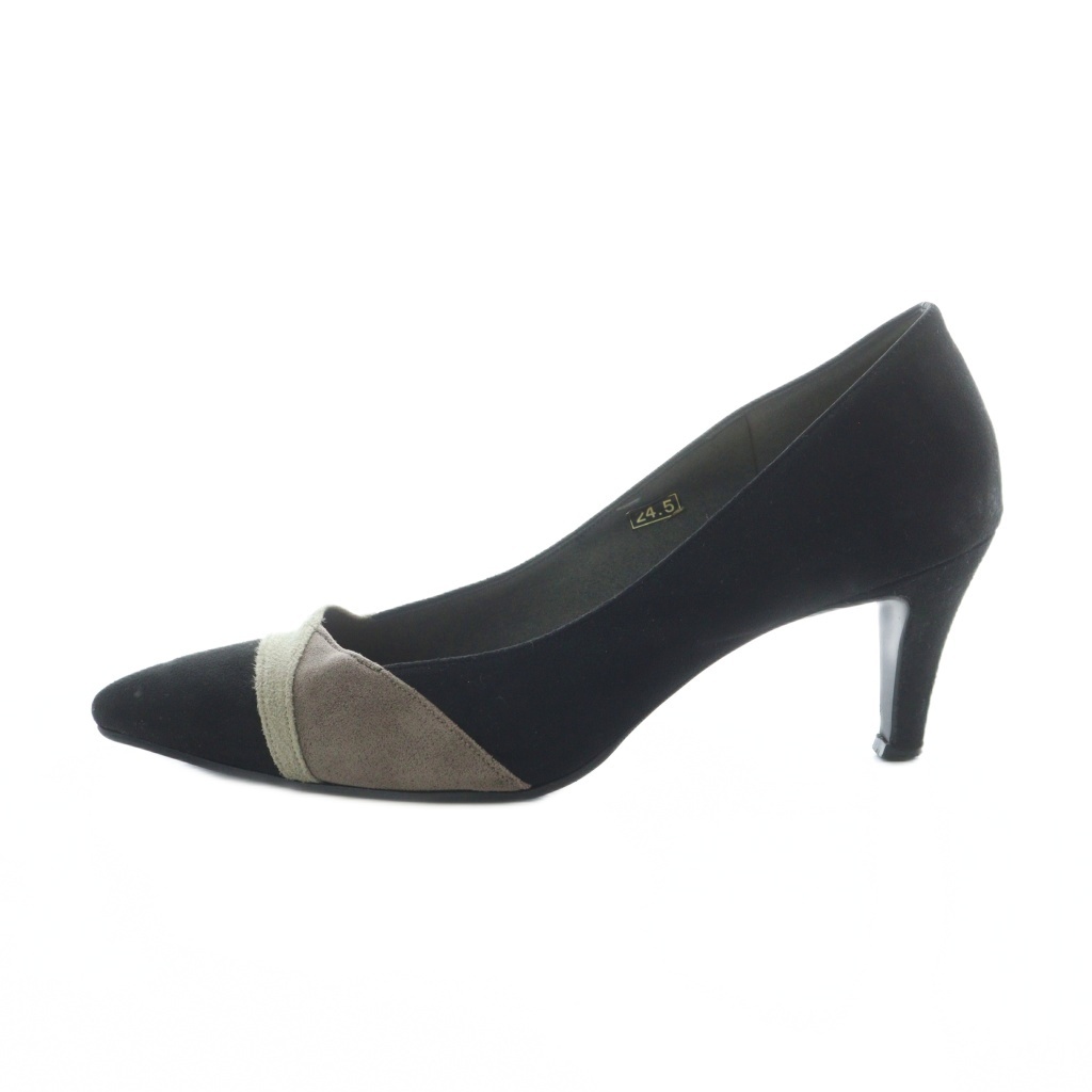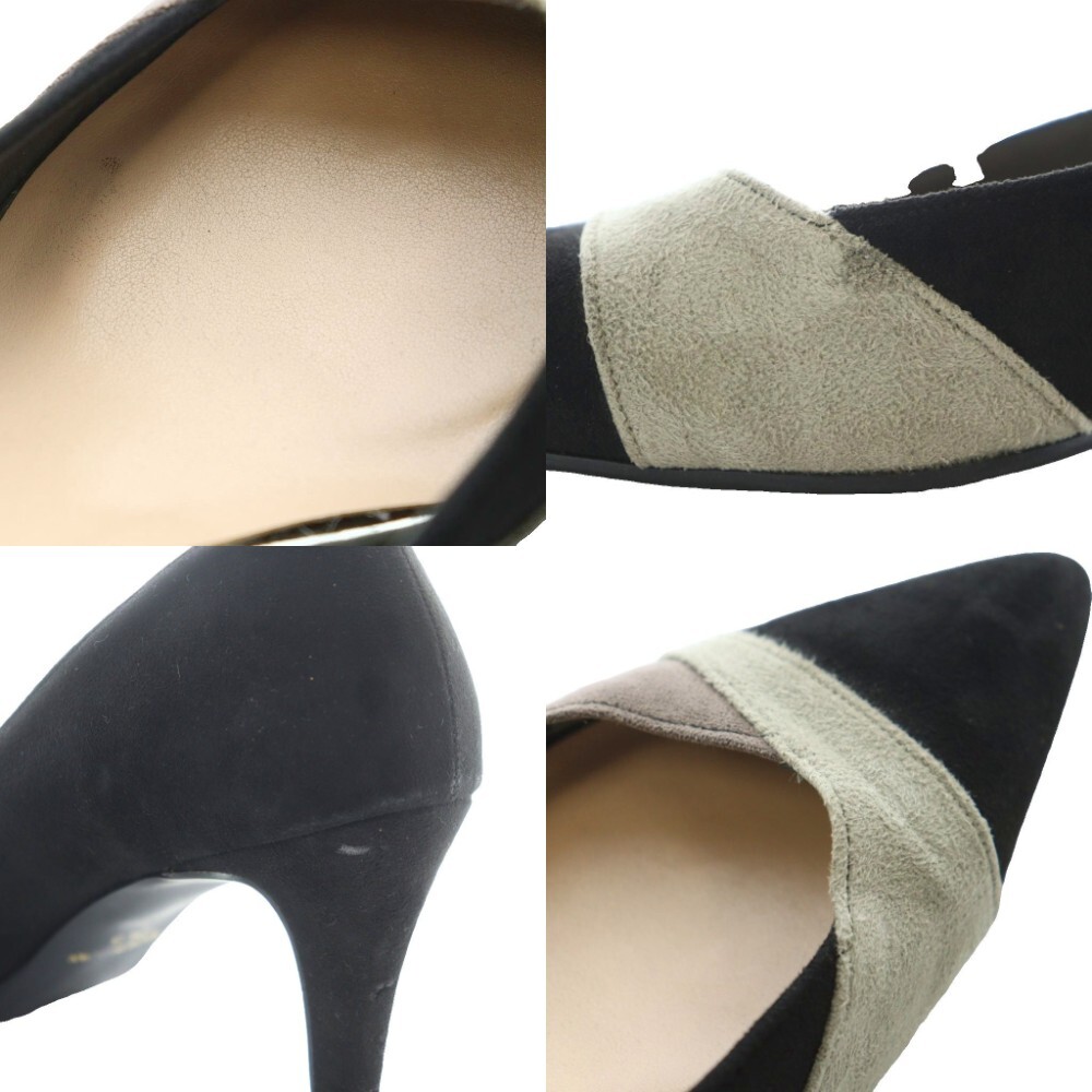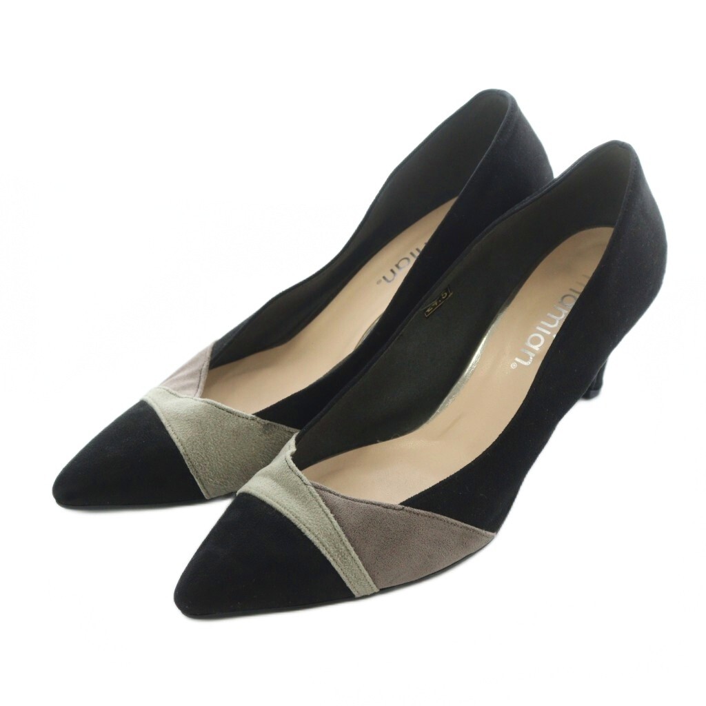 マミアン mamian パンプス スエードレザー 本革 24.5cm 黒 ブラック ベージュ チャコールグレー 切替デザイン /RI ■OS レディース
