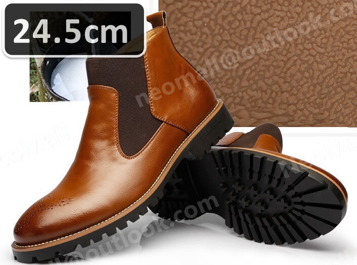 メンズ ショートブーツブーツ 24.5cm ブラウン PUレザー ミリタリーブーツ アウトドアシューズ 【n019】