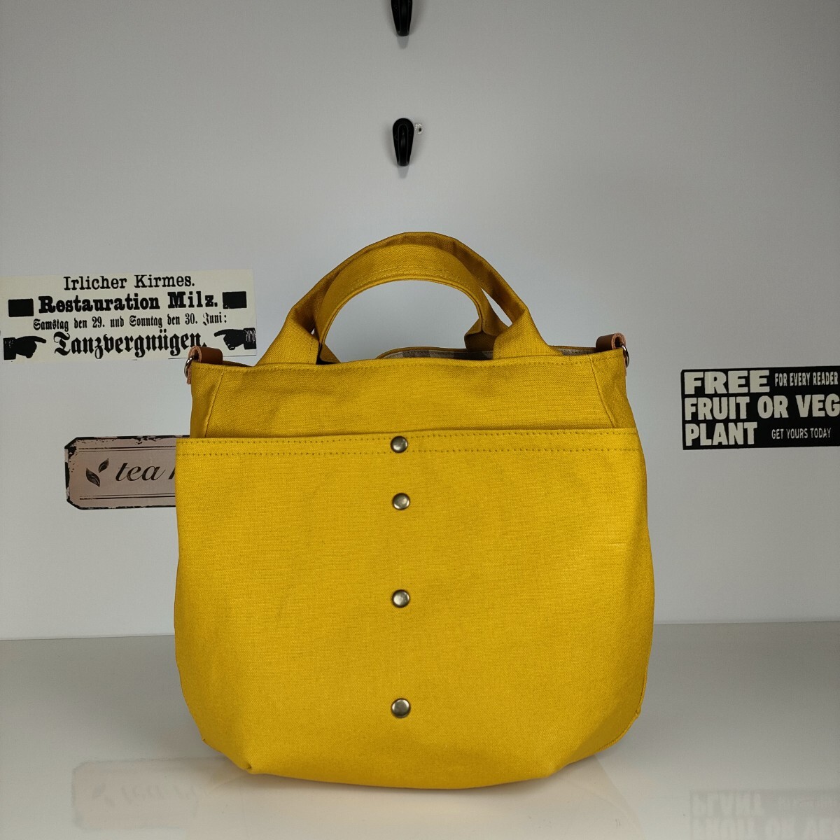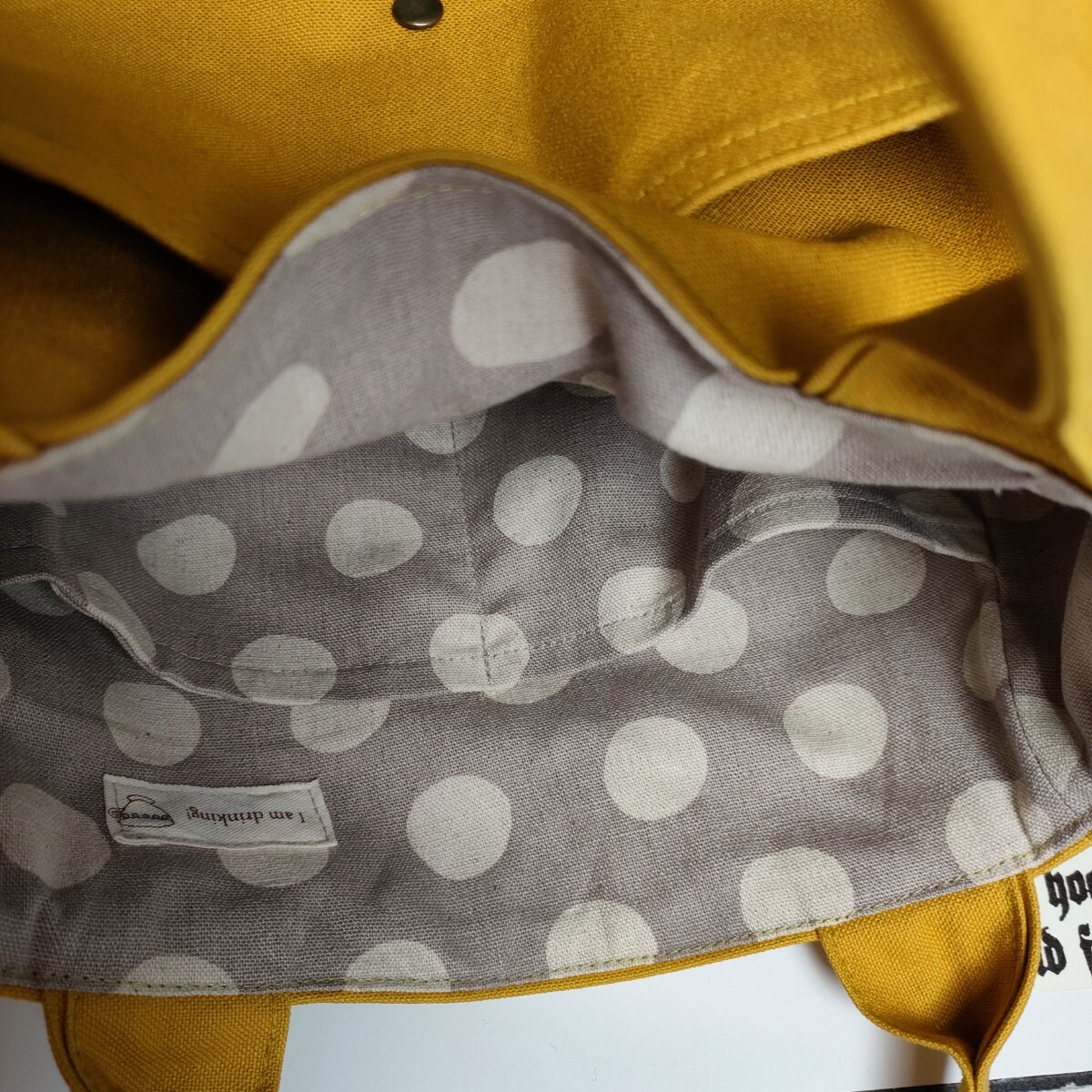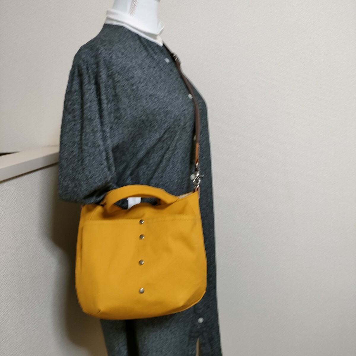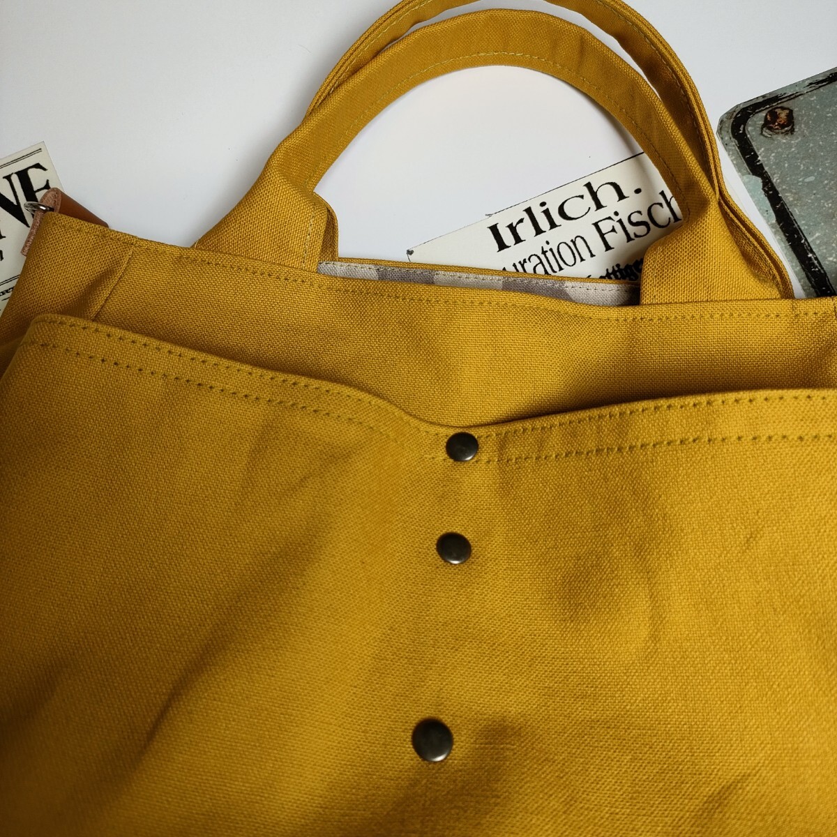 | 沢山の品の中から、ご覧いただきありがとうございます。 お店には売っていない、ハンドメイドの温かさをお届け出来ましたら幸いです。 マリーゴールドみたいな山吹色の11号帆布で、ぷっくりとしたバッグを作りました。コーデネイトの差し色になるような綺麗な山吹色です。 ♪サイズ 深さ・・・約22 横・・・ペタンと置いて入り口位置で29 マチ・・・9〜11 持ち手・・・26 ♪素材 表・・・11号帆布(コットン100)カシメ、Dカン、本革のタグ 内側・・・コットンリネンキャンバス しっかりとした帆布で、自立するバッグになっています。ダーツでぷっくりとした2部屋のポケットが、小物の収納に便利です。 Dカンをつけましたので、お手持ちの肩紐でショルダーや斜め掛けにもなります(画像の肩紐は出品していません) 内側は、水玉模様のコットンリネンキャンバスで。2部屋のポケットを付けました。 毎日の小物や、バッグを製作しています。 どうぞよろしくお願いいたします。 ★リネン、コットンは天然素材ならではのネップ、スラブ等ございます。 ★雨、汗、摩擦などで、色落ちする場合がございます。 ★生地の色、厚さに合わせなるべく糸を変えアイロンをこまめに掛けながら、職業用ミシンで丁寧に製作しています。 | |||