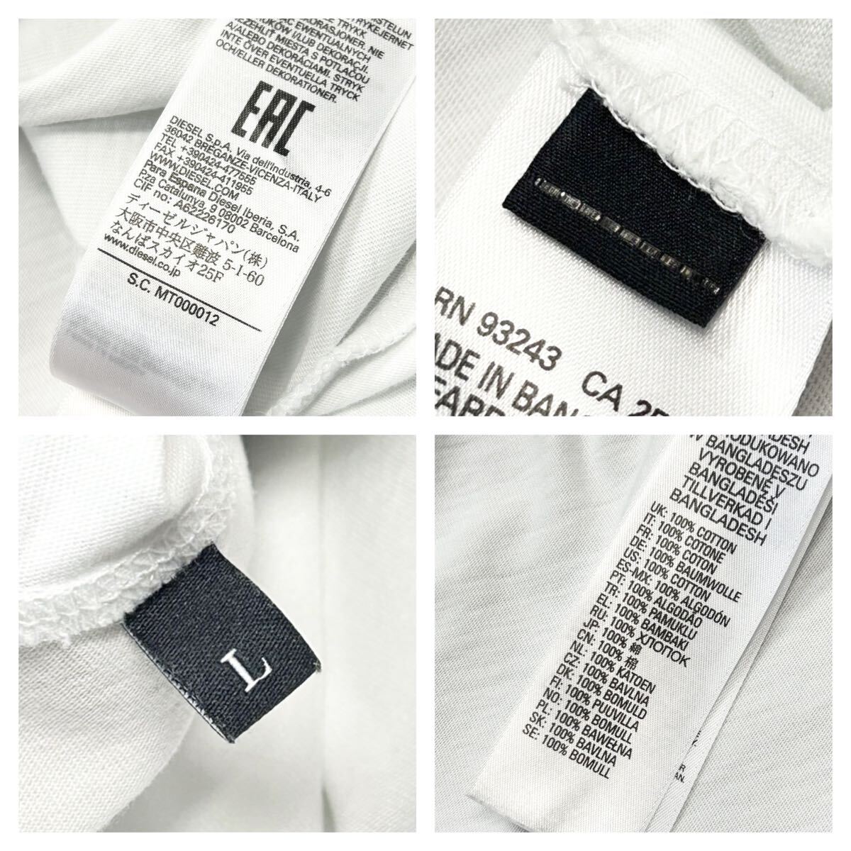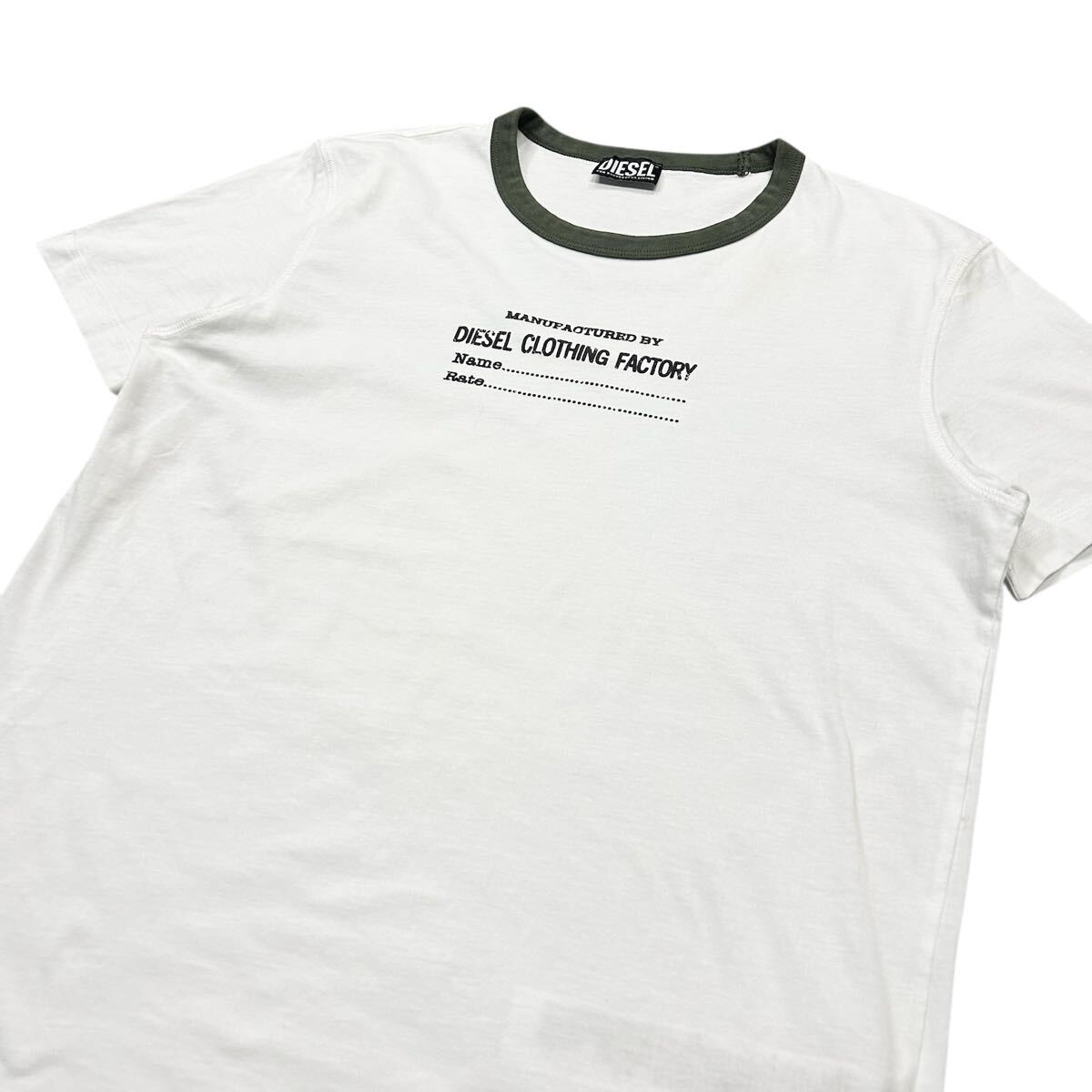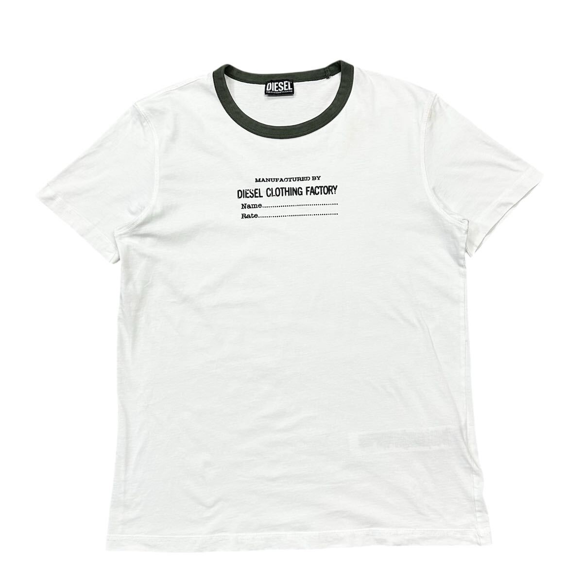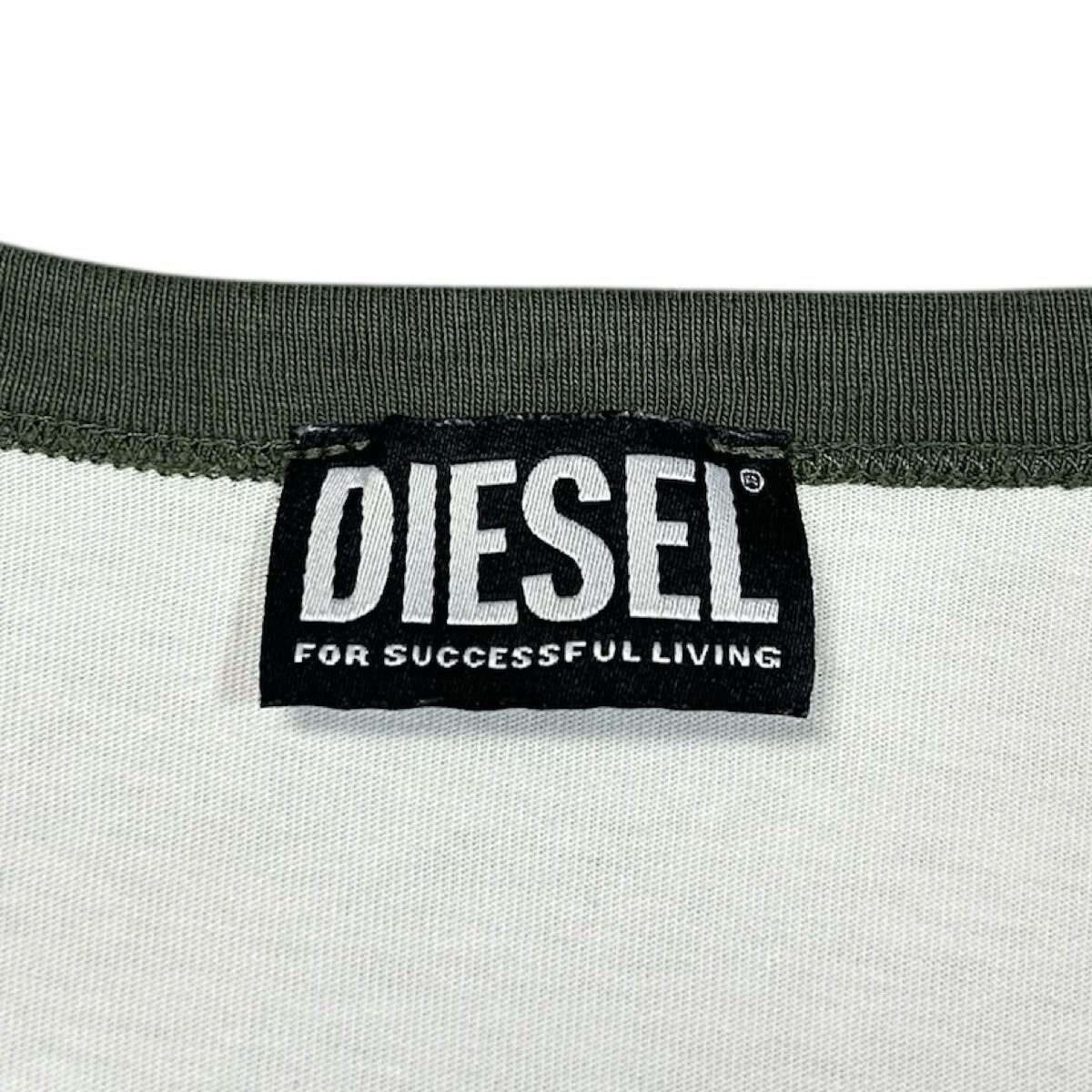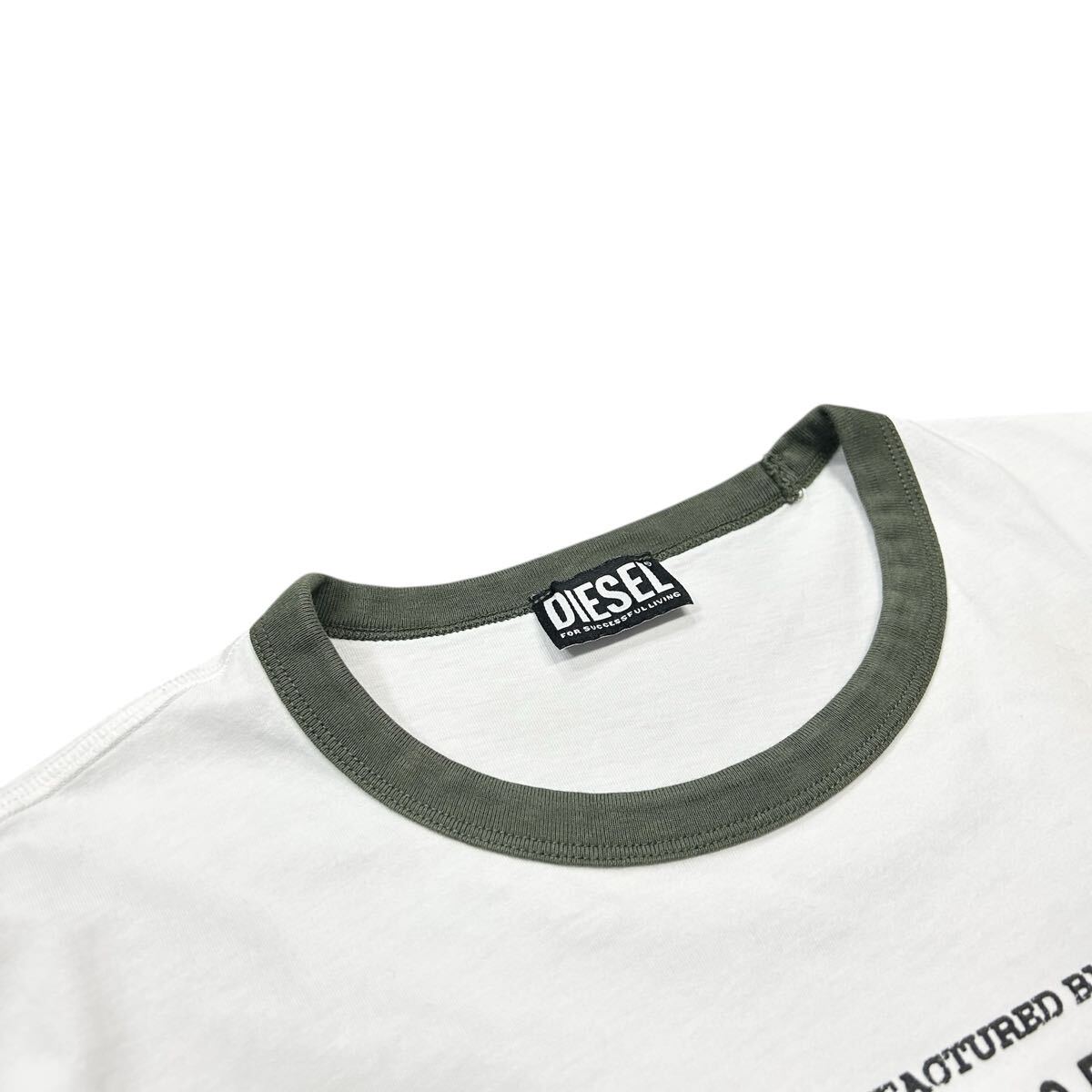 【DIESEL/ディーゼル リンガーネックTシャツ メンズL ホワイト/カーキ系】